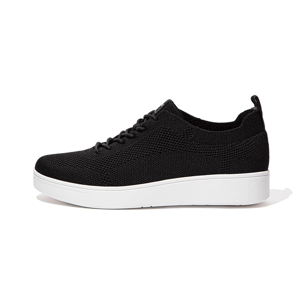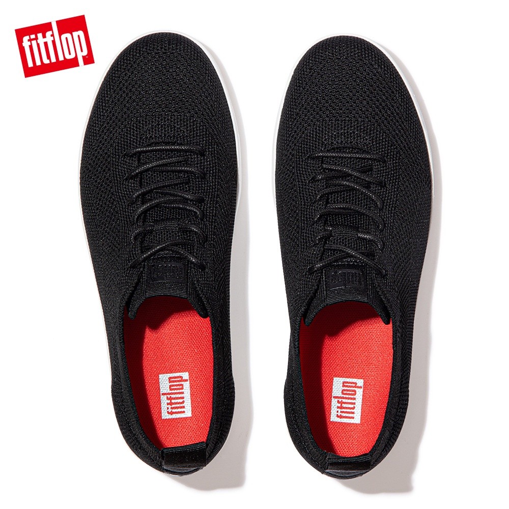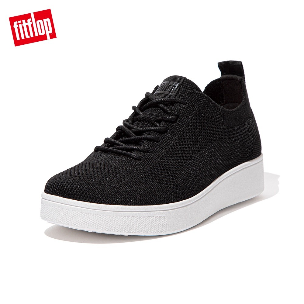 【FitFlop】RALLY TONAL KNIT SNEAKERS 運動風繫帶休閒鞋-女(黑色)