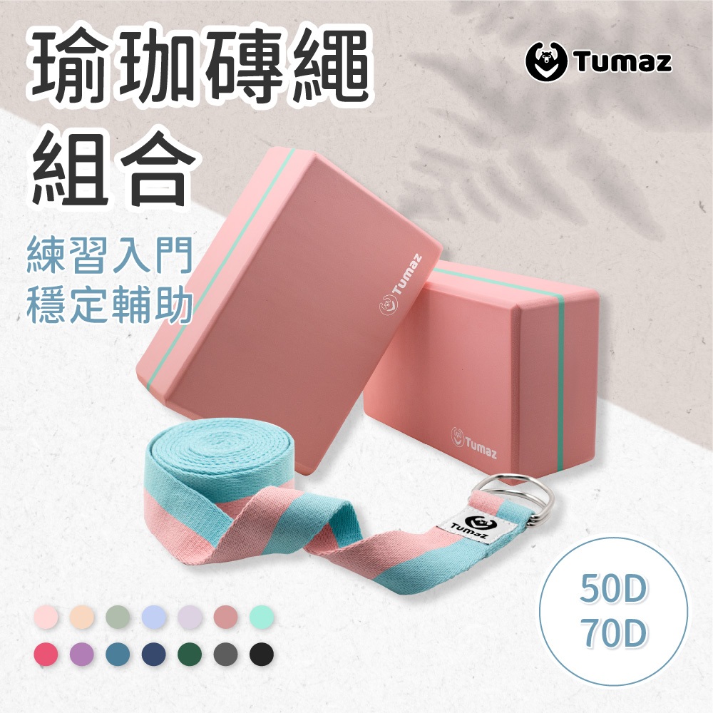 Tumaz月熊/高密度50D 70D瑜珈磚2入組 配伸展帶優惠組合 新升級7.5cm 軟木磚 免運台灣現貨
