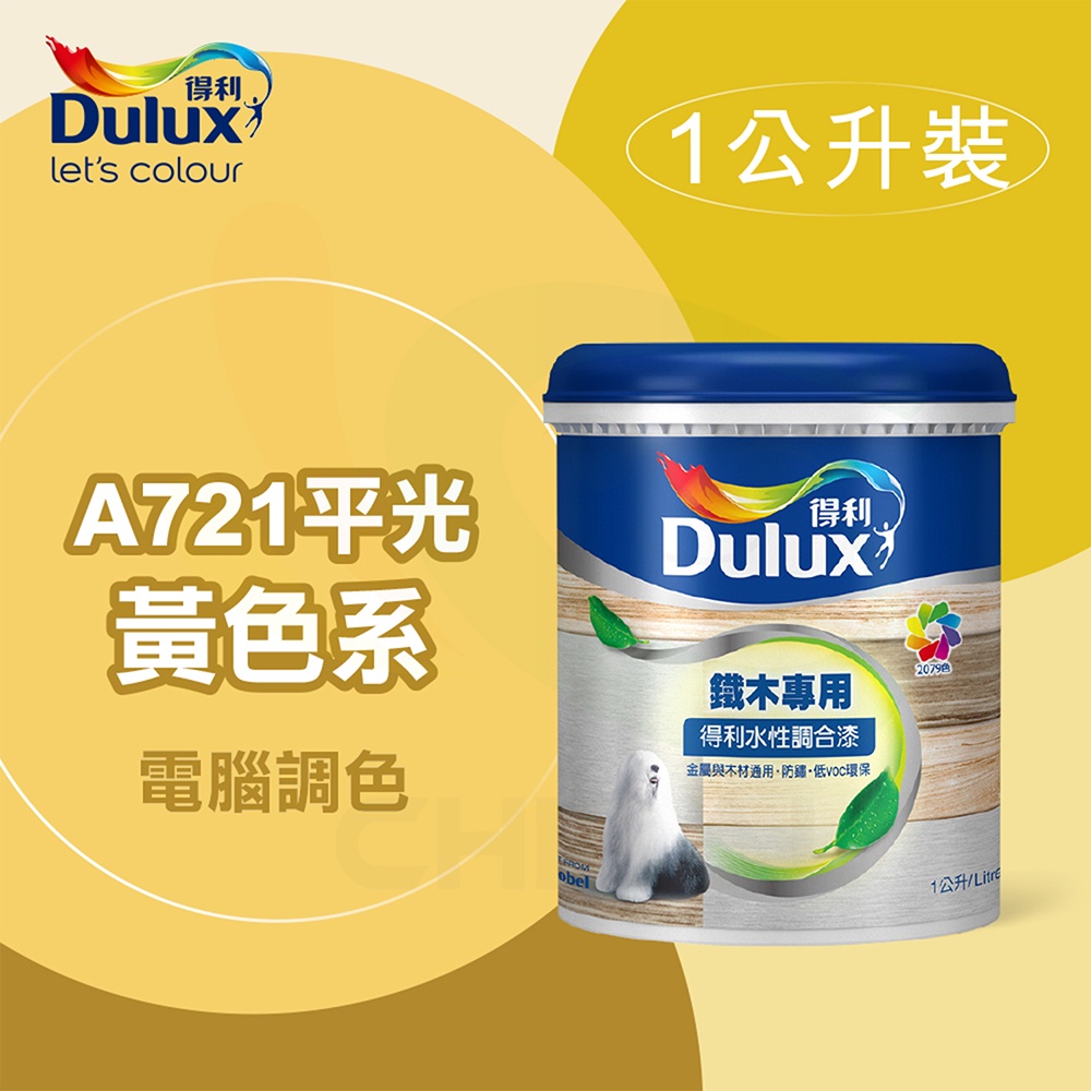 【得利】電腦調色《黃色系》水性平光調合漆 A721(1公升裝)_買1罐送黑傑客301型3吋中毛油漆刷|漆寶