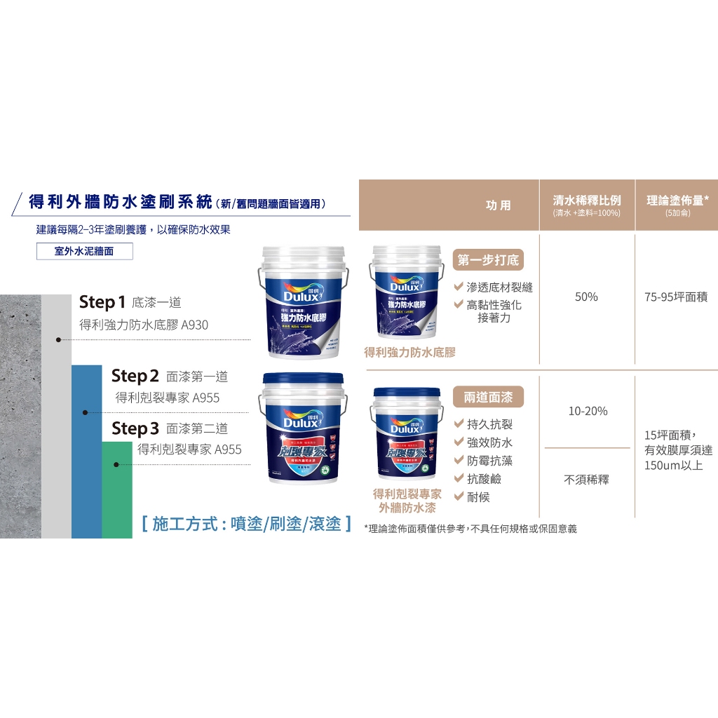 【得利】電腦調色《綠色系》剋裂專家防水漆 A955(3公升裝)|漆寶