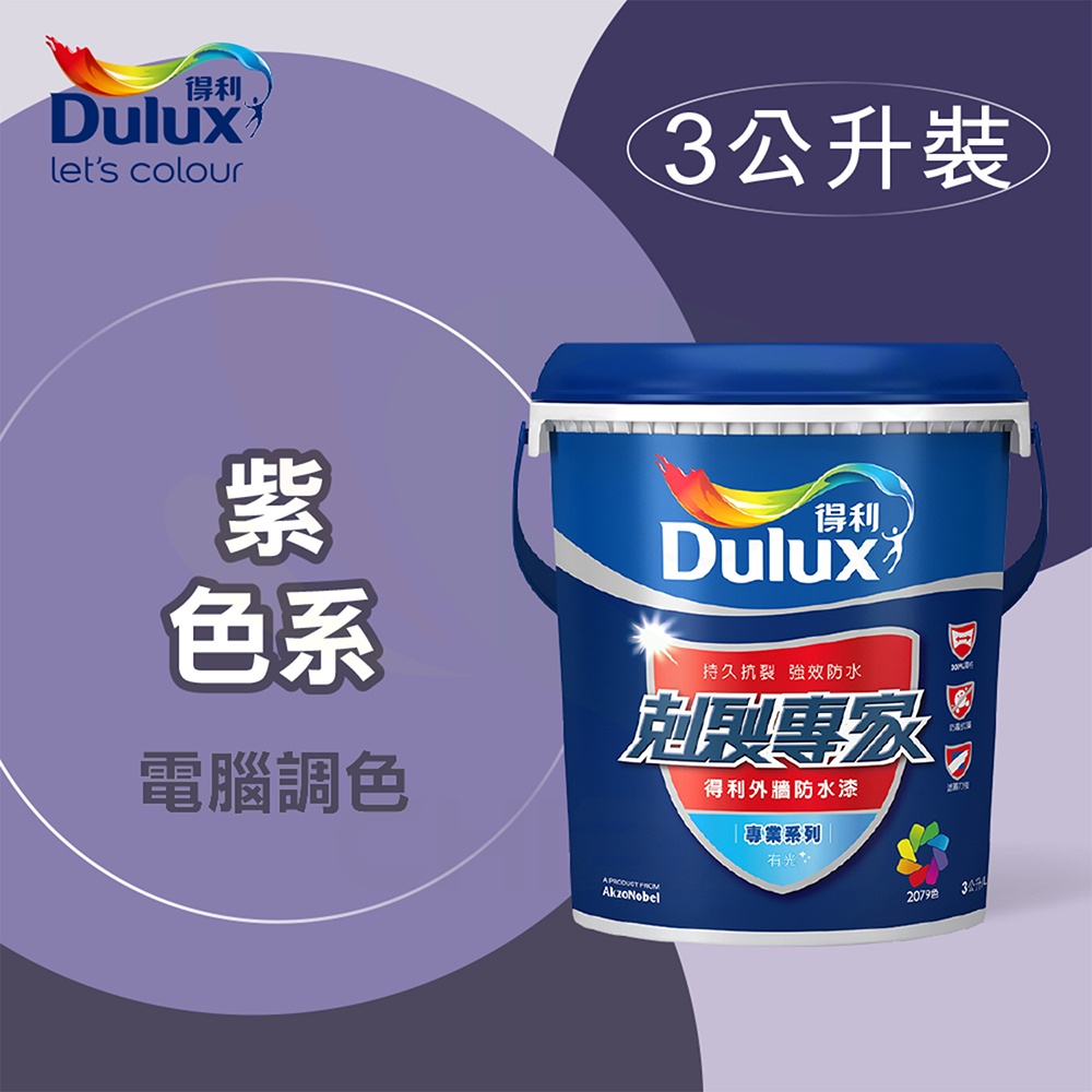 【得利】電腦調色《紫色系》剋裂專家防水漆 A955(3公升裝)|漆寶