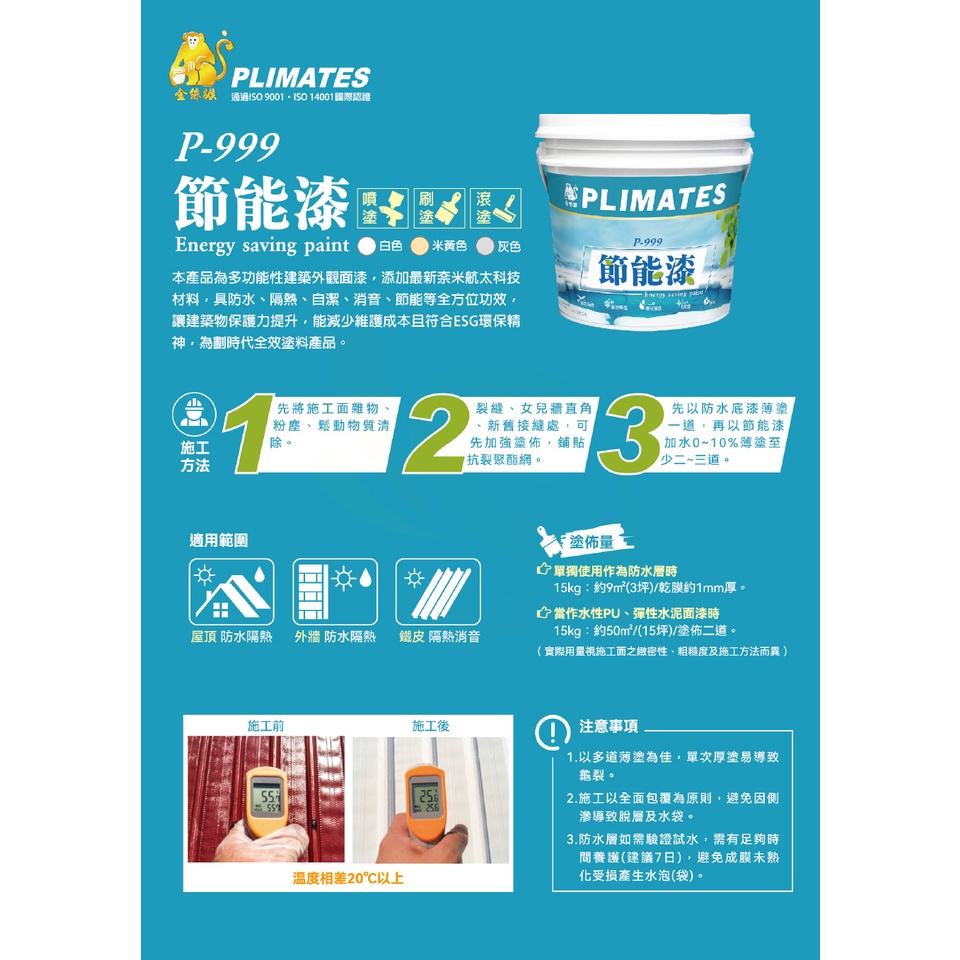 【金絲猴】節能漆P-999-白色(15公斤裝)_屋頂/外牆隔熱防水漆|漆寶