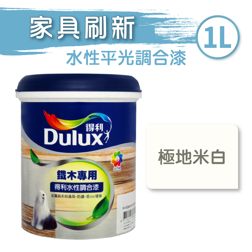 【得利】家具刷新水性平光調合漆 A721-極地米白(1公升裝)_買1罐送黑傑客301型3吋中毛油漆刷|漆寶