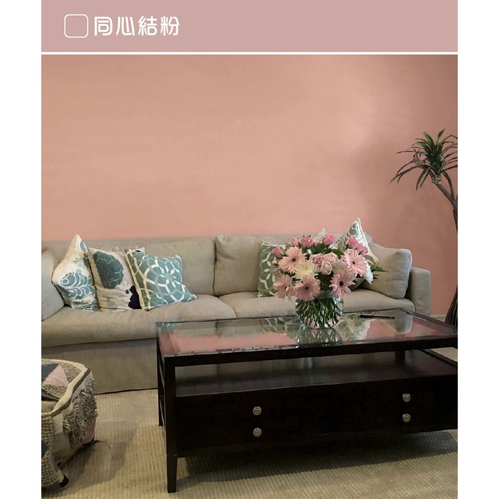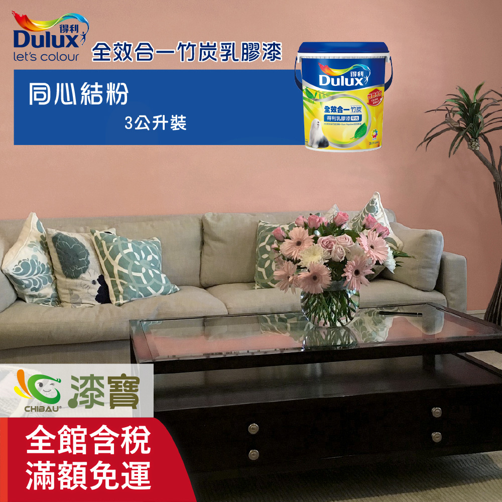【得利】《室內莫蘭迪風格色》全效合一竹炭乳膠漆-同心結粉(3公升裝)_送600型4吋纖絲毛刷|漆寶