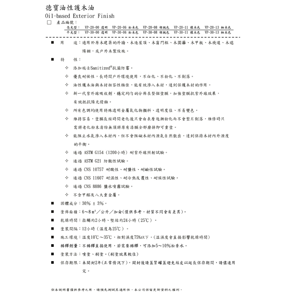 【德寶】二合一油性木屋專用護木油(1加侖裝)|漆寶