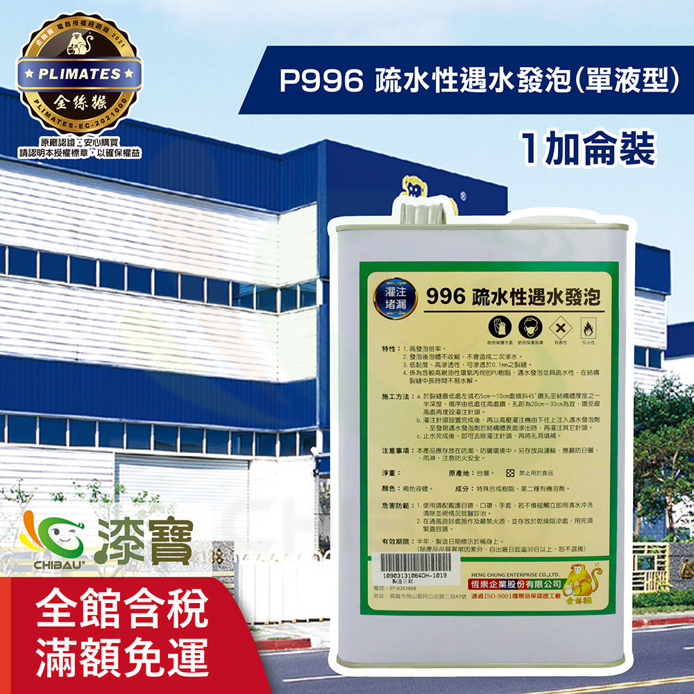 【金絲猴】單液型疏水性遇水發泡P-996(1加侖裝)|漆寶