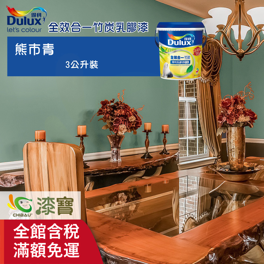 【得利】《室內莫蘭迪風格色》全效合一竹炭乳膠漆-熊市青(3公升裝)_送600型4吋纖絲毛刷|漆寶