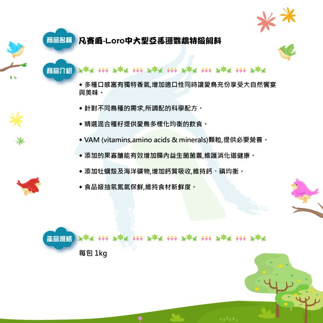 凡賽爾-Loro中大型亞馬遜鸚鵡特級飼料-1kg