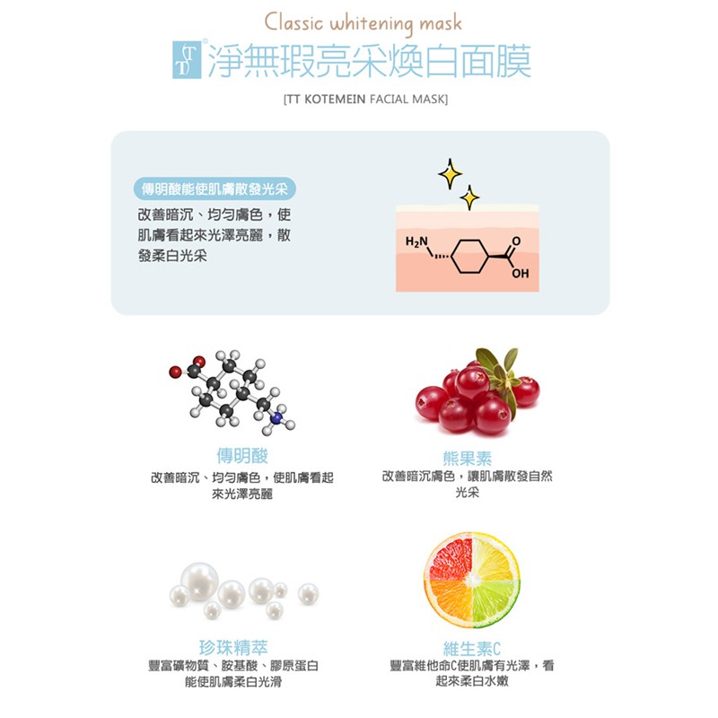 TT 波特嫚面膜 經典羽絲柔系列 (20片/箱) 極潤水光保濕面膜 淨無暇亮采煥白 Q10彈力緊緻
