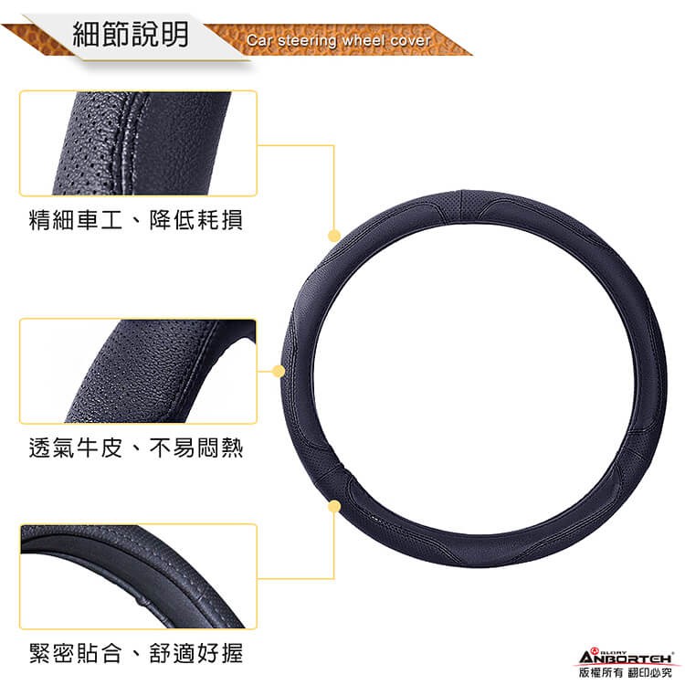 【安伯特】純正牛皮方向盤套止滑 高耐磨 高韌性 透氣吸汗(神隱任務)