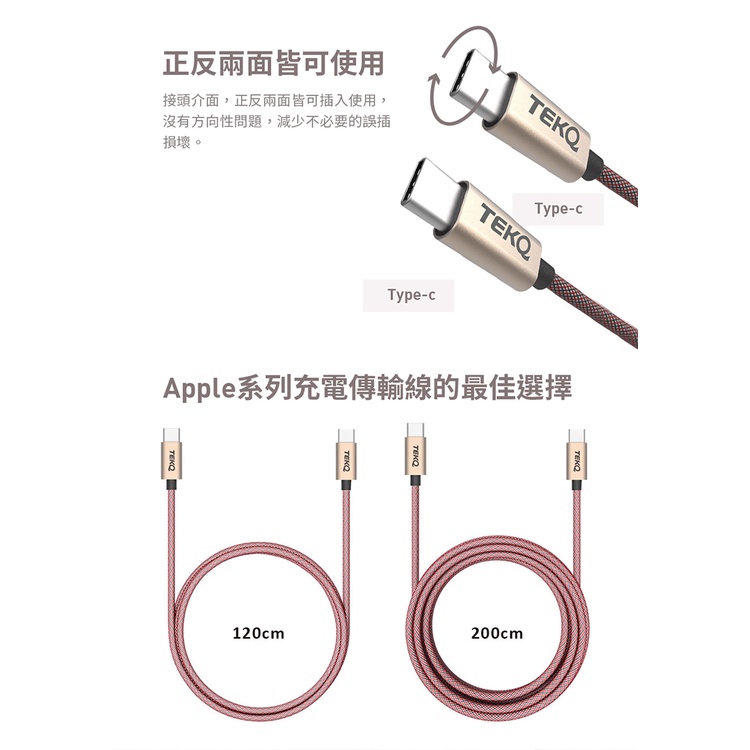 【TEKQ】 20W USB-C PD 快速充電器+TEKQ uCable USB-C 快充傳輸線-120cm 快充組合
