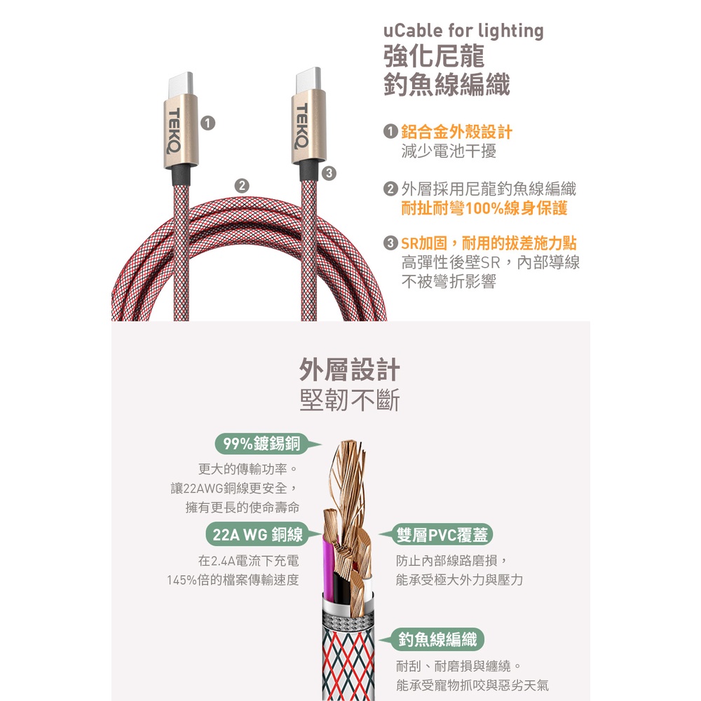 【TEKQ】 20W USB-C PD 快速充電器+TEKQ uCable USB-C 快充傳輸線-200cm 快充組合