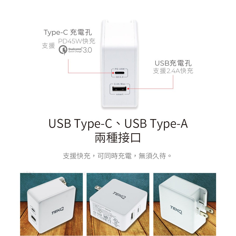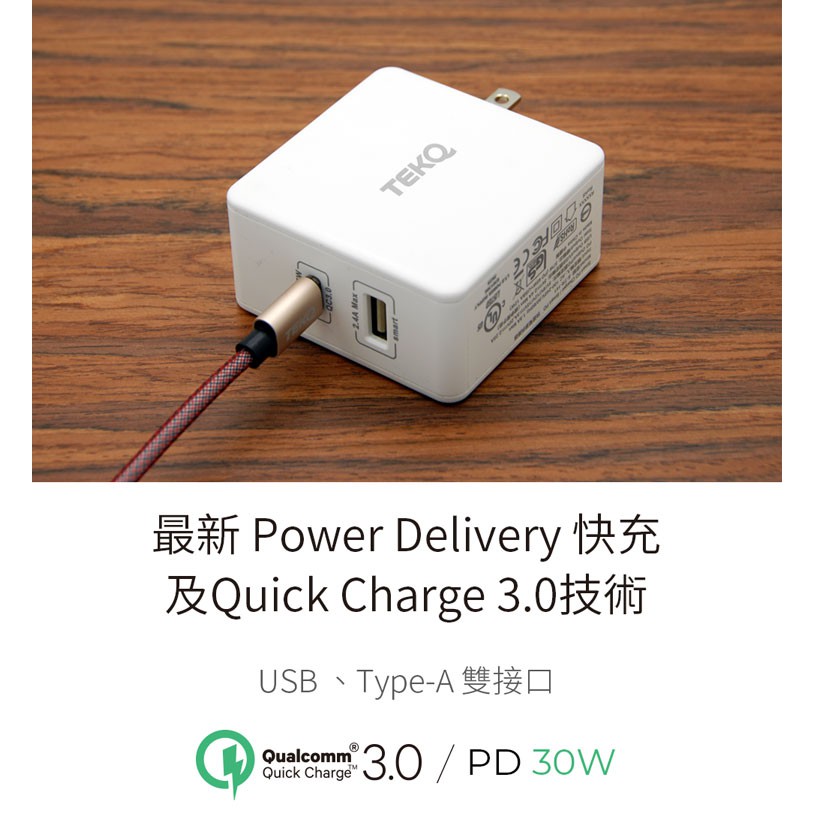 【TEKQ】2孔 57W USB-C+USB PD QC3.0充電器+TEKQ USB-C 快充傳輸線200cm快充組合