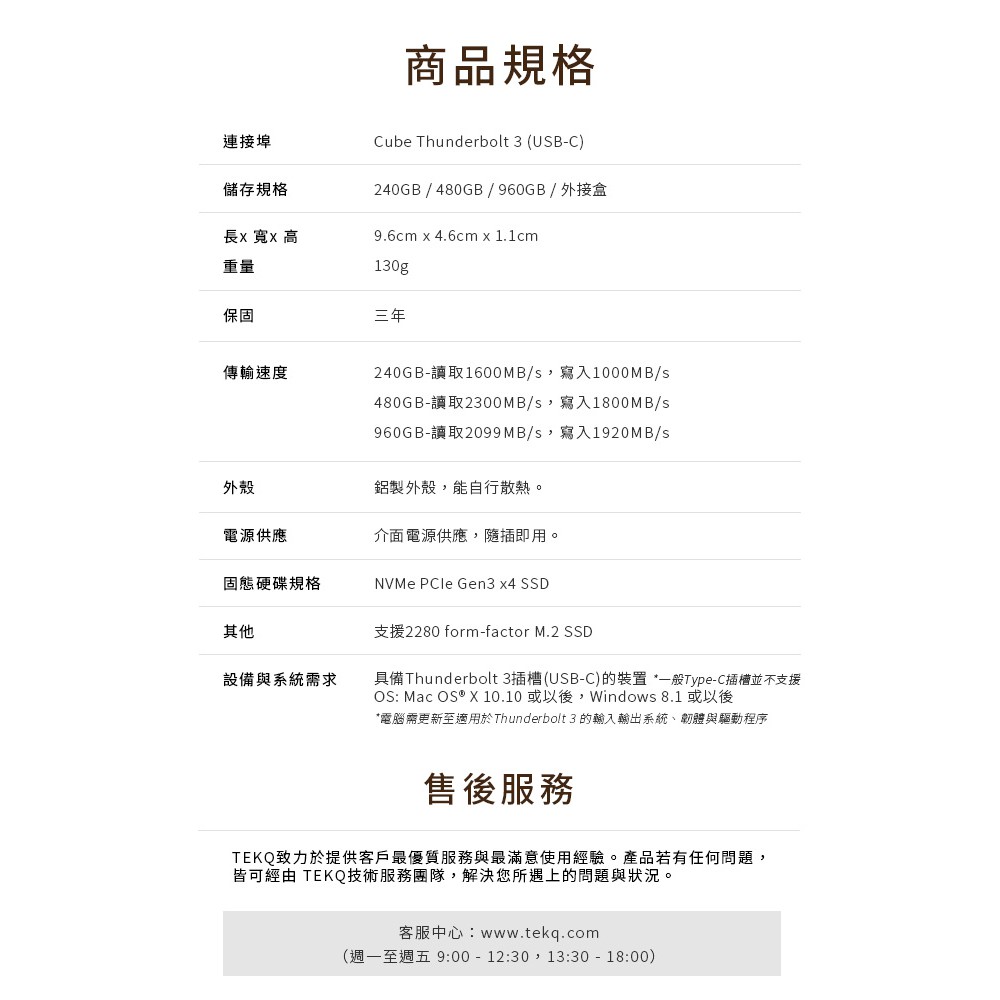 【TEKQ】 Cube Thunderbolt 3 PCIe NVMe SSD 固態硬碟 外接盒