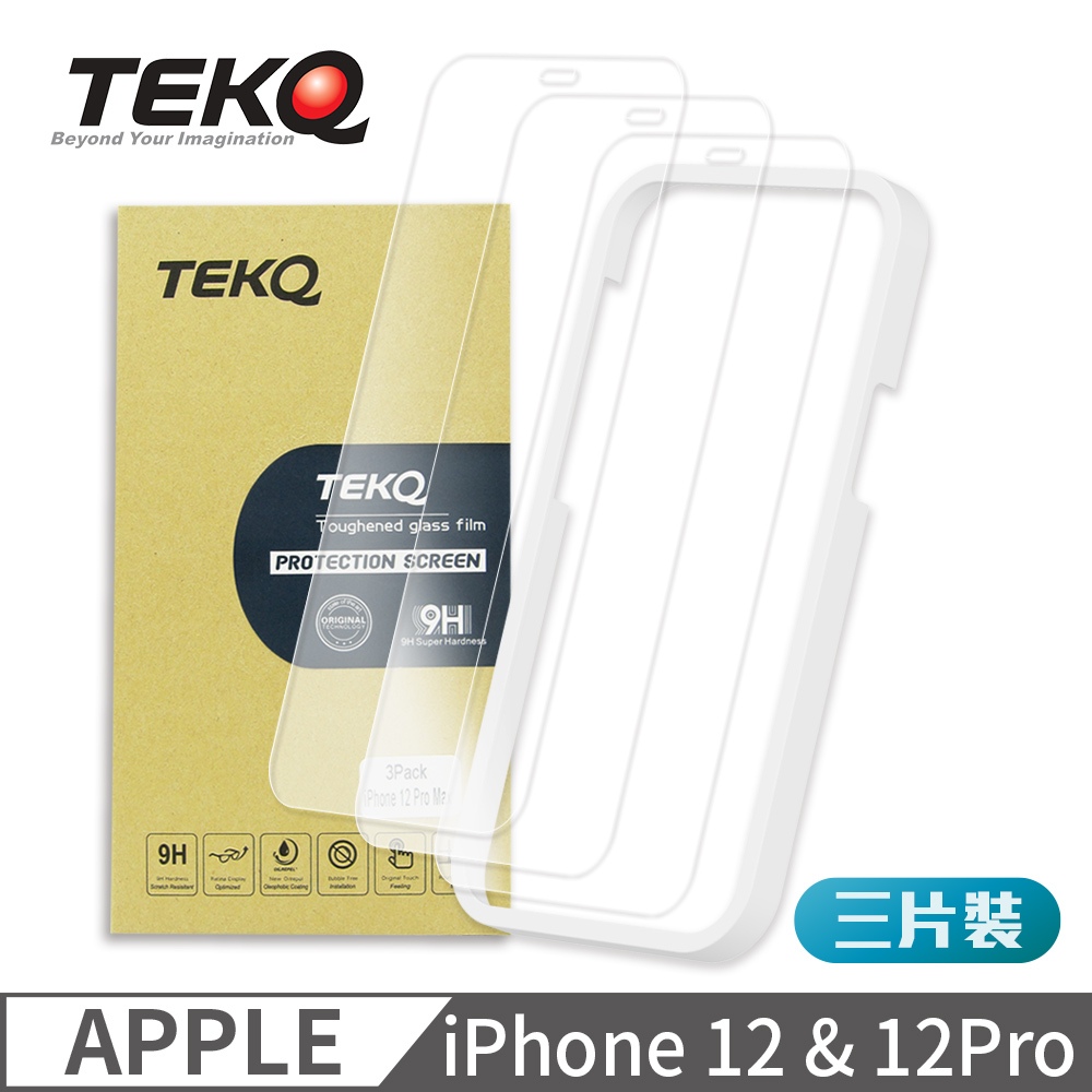 【TEKQ】(一組三入) iPhone 12系列保護貼 9H鋼化玻璃 螢幕保護貼 3入 附貼膜神器