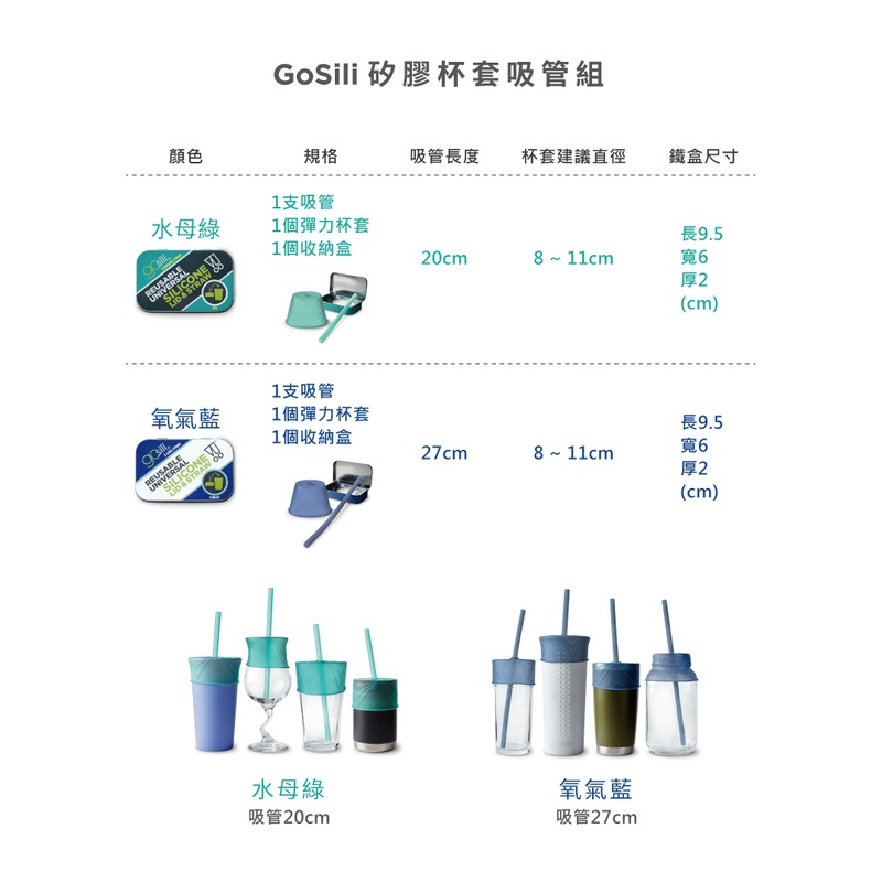 美國GoSili 【杯套吸管口袋組】無毒矽膠 吸管 防漏杯套 彈性杯套 學習杯套 收納盒【總代理公司貨】