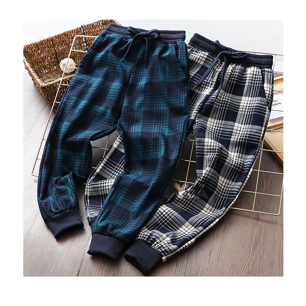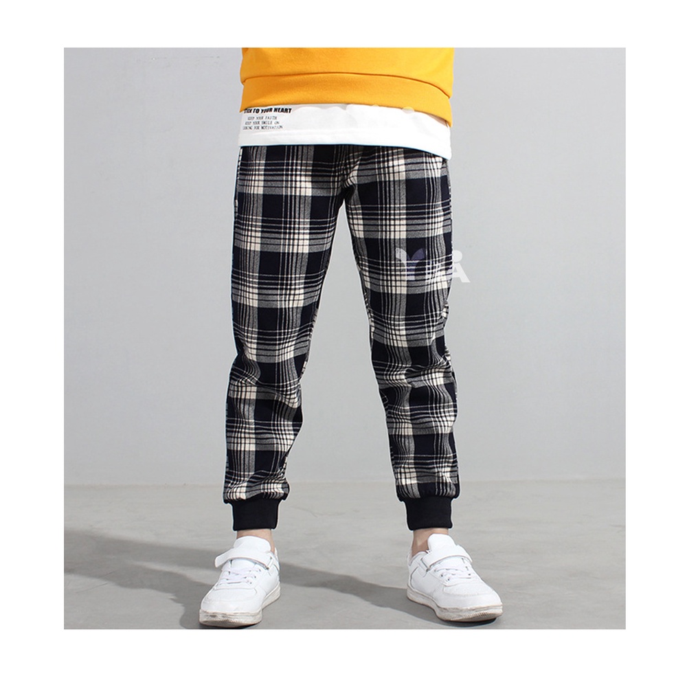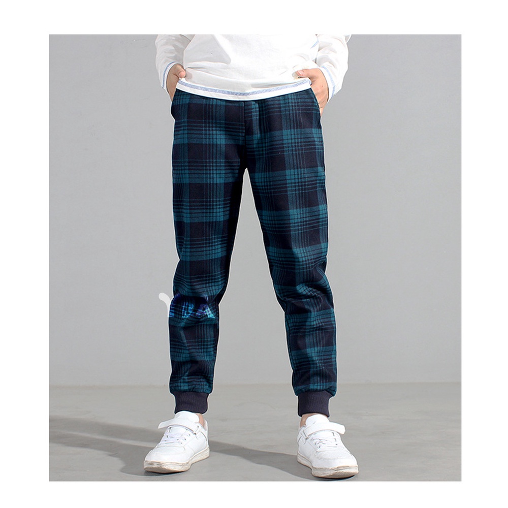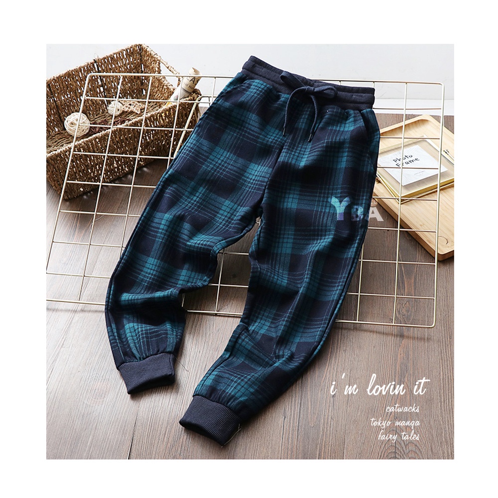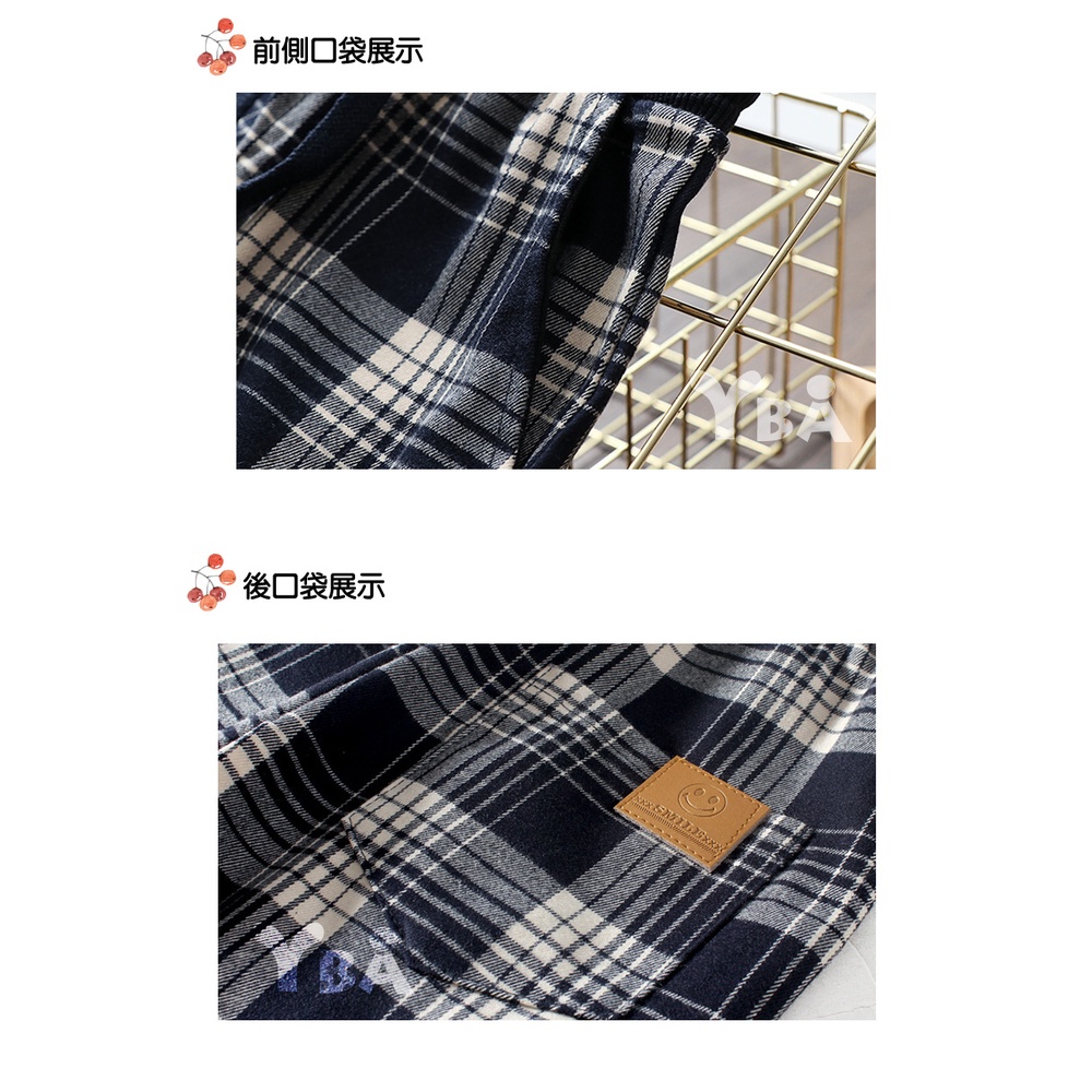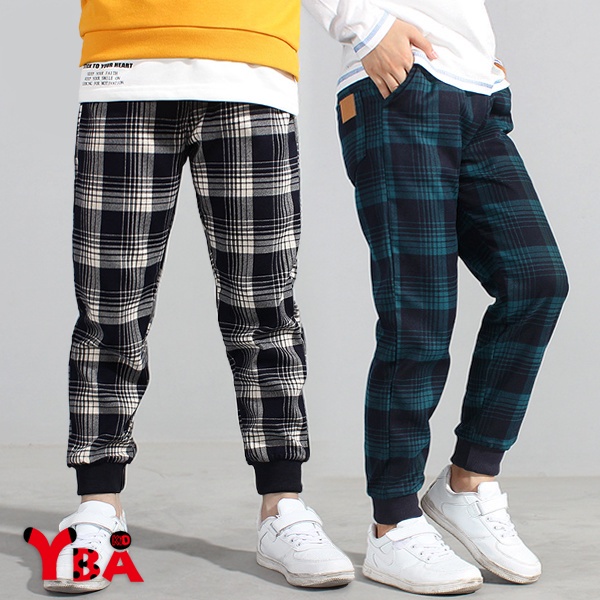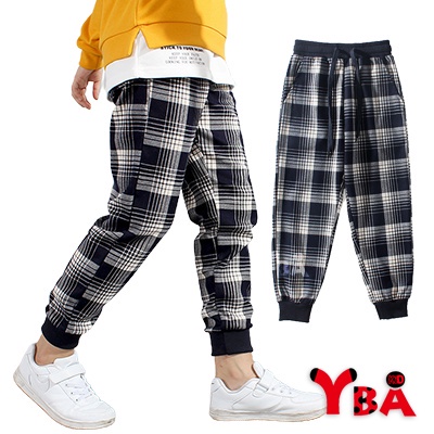 【YBA童裝】韓版時尚格子休閒長褲10/05(黑/藍)【K59002】[預購]