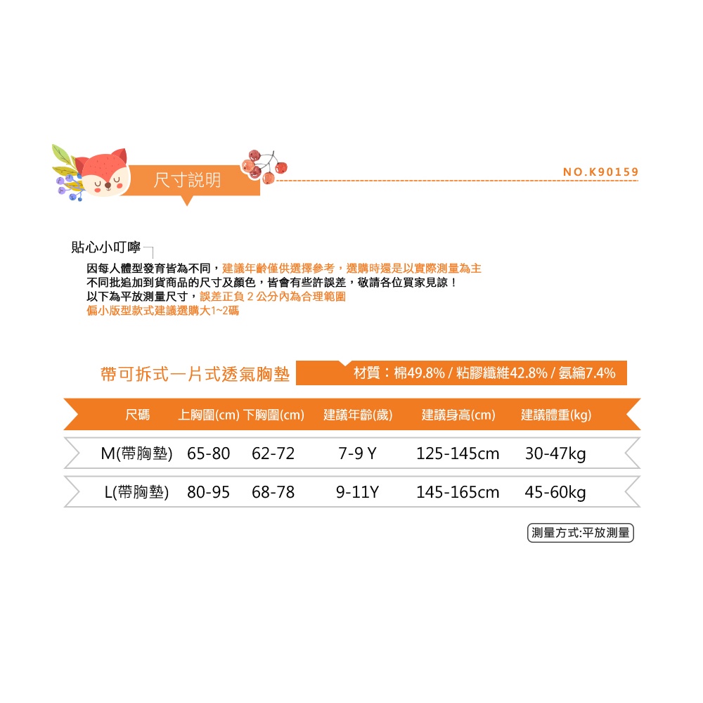 【YBA童裝】薄款無縫透氣一片式胸墊發育內衣06/07(白/粉/灰)【K90159】[預購]