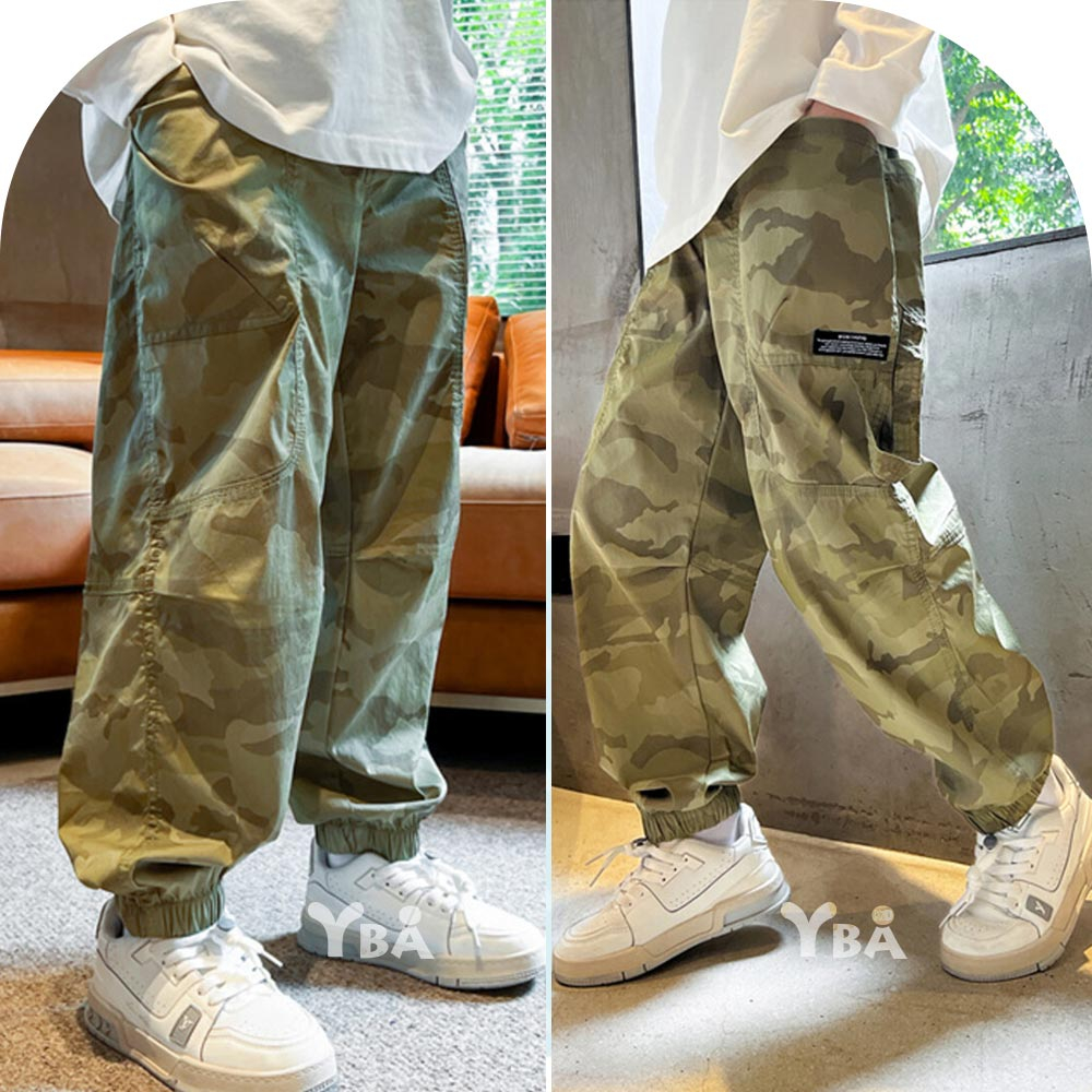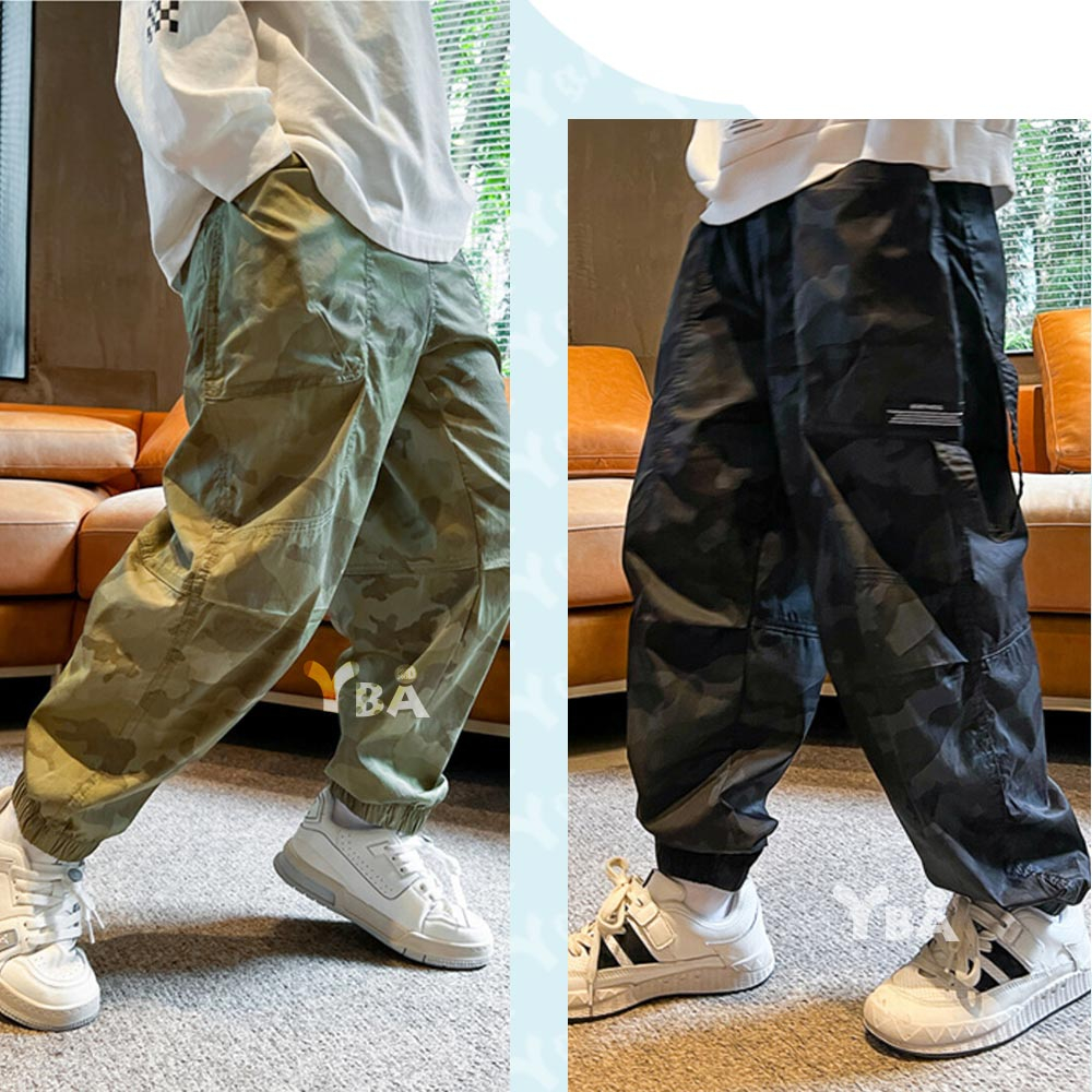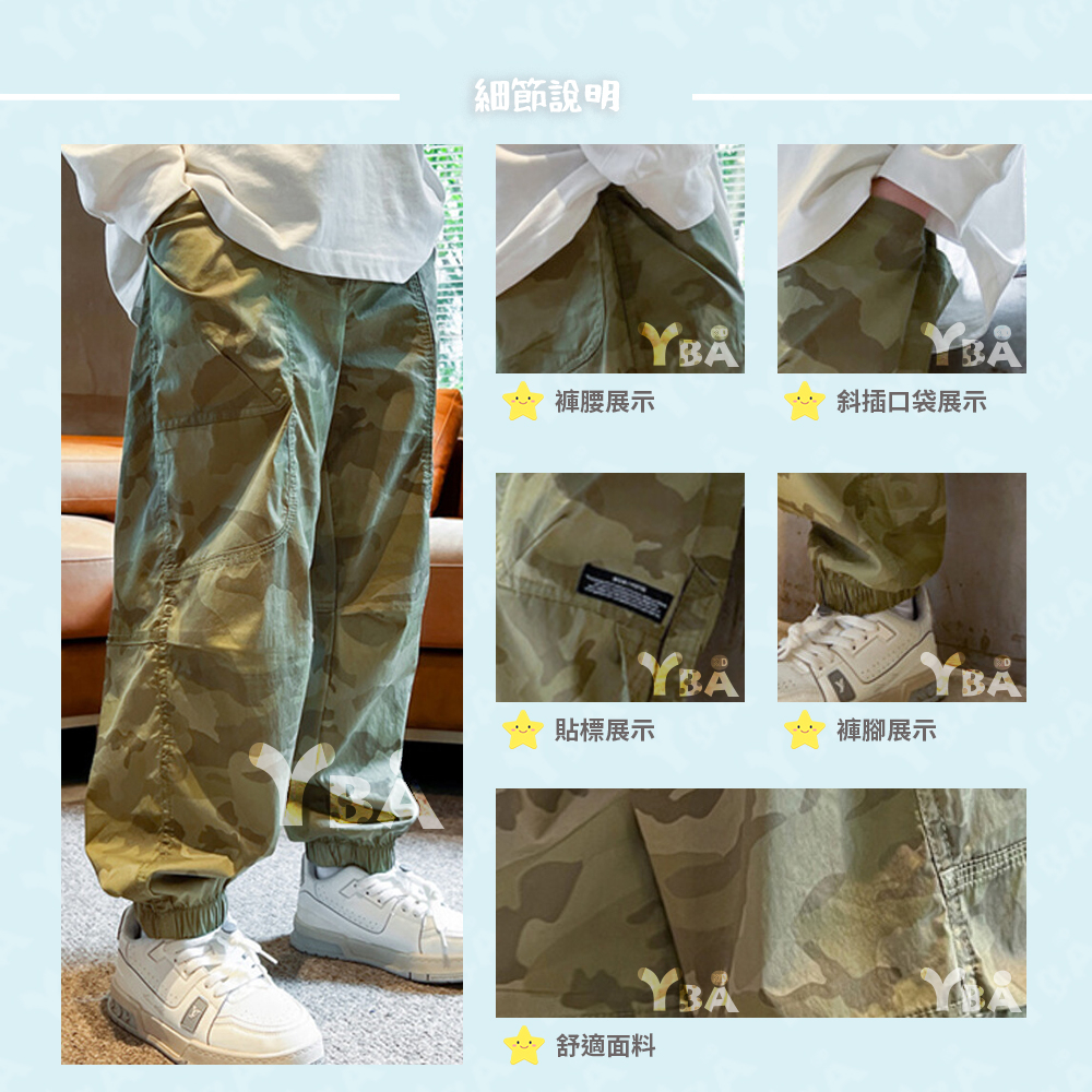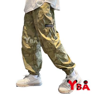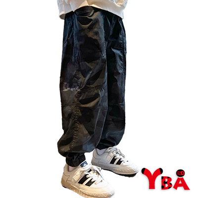 【YBA童裝】日系男孩工裝迷彩鬆緊褲腳休閒長褲(黑/綠)08/22【K64079】[預購]