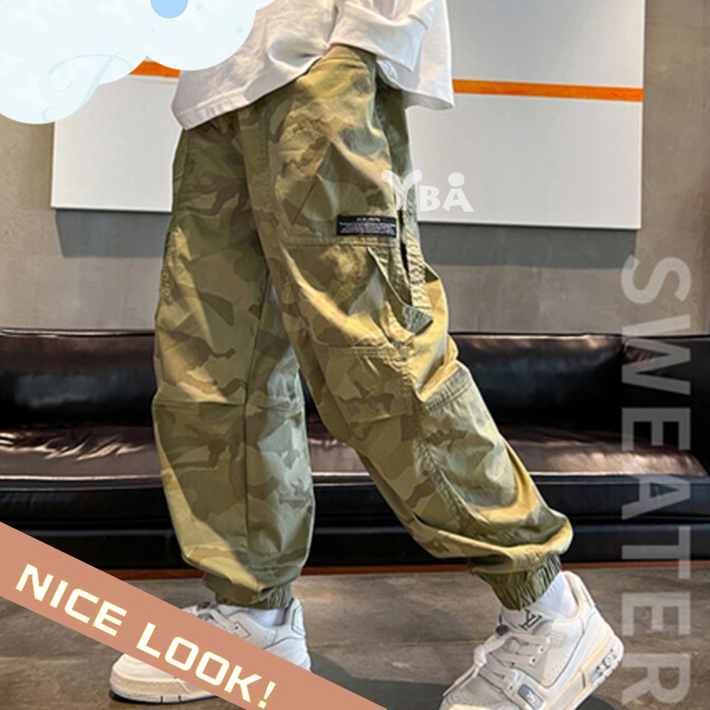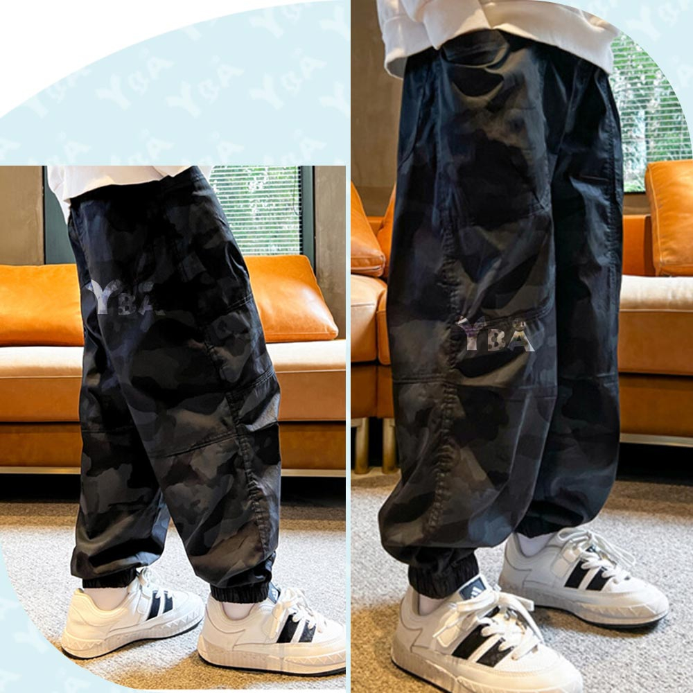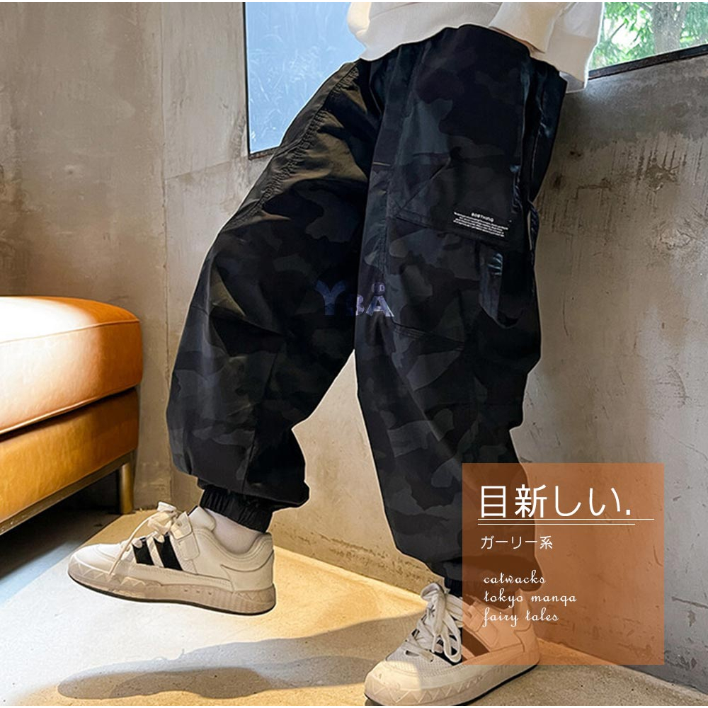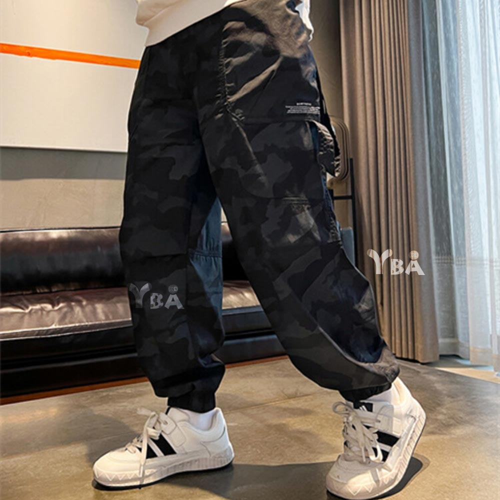 【YBA童裝】日系男孩工裝迷彩鬆緊褲腳休閒長褲(黑/綠)08/22【K64079】[預購]