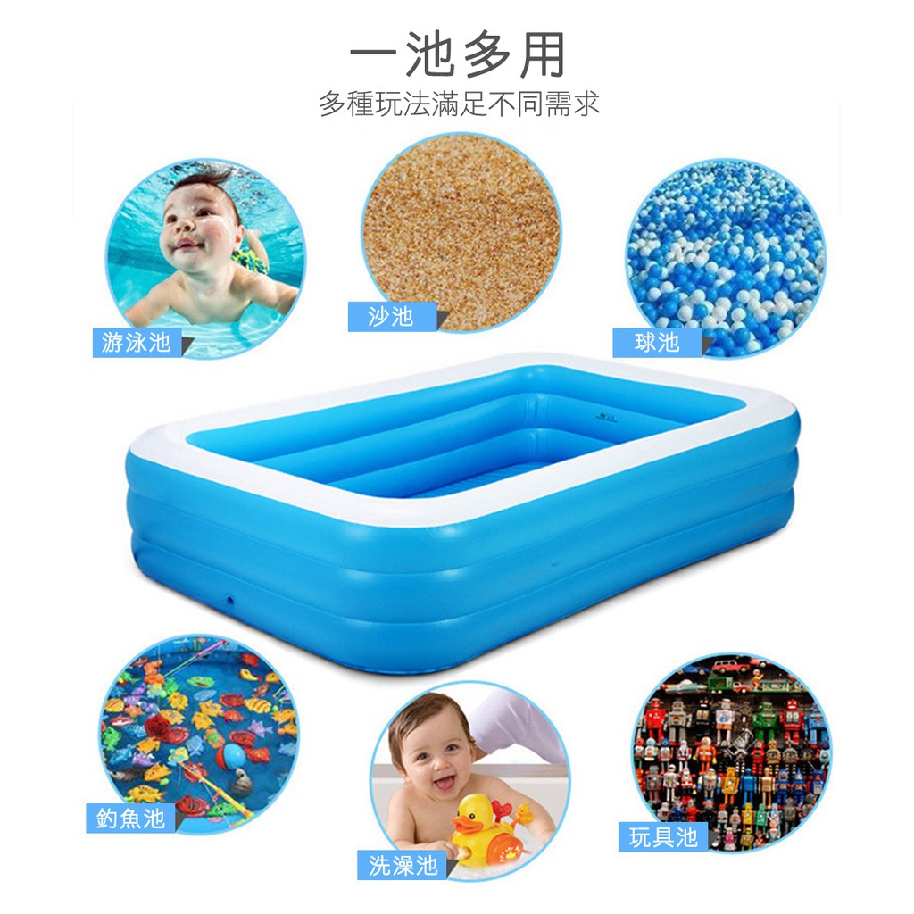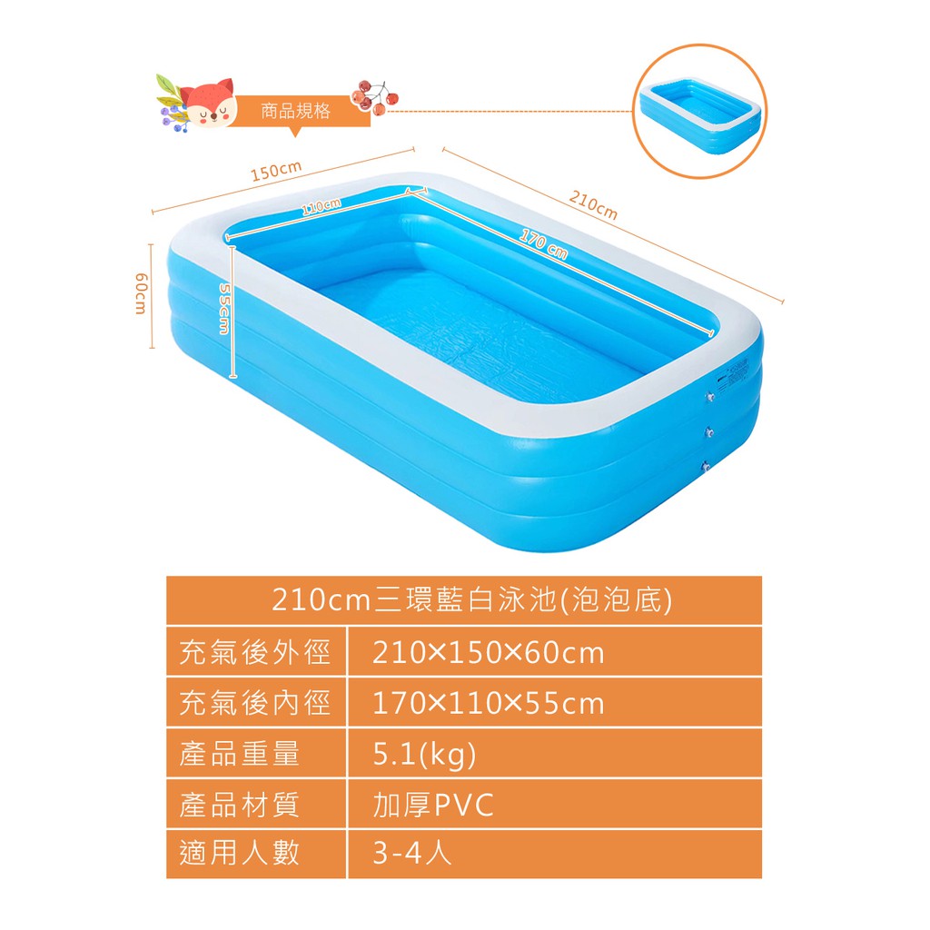 【YBA童裝】210cm加厚藍白三環充氣泳池【K90139】[現貨]