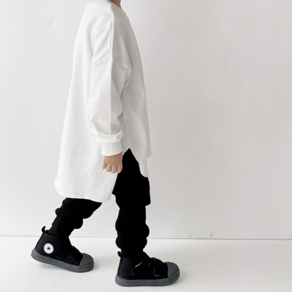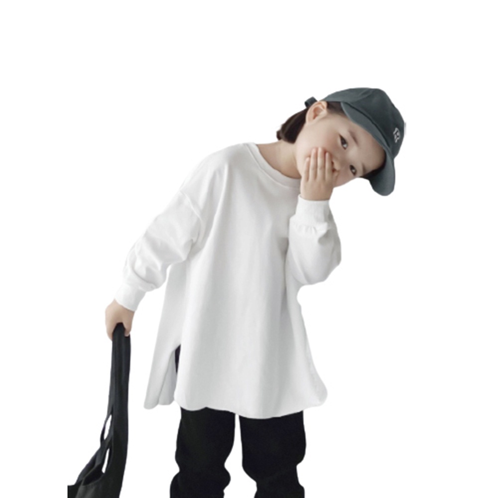 前短後長開岔磨毛長袖上衣 (小孩賣場) 長版上衣 大童 兒童 童裝 橘魔法 現貨 【BB7484】