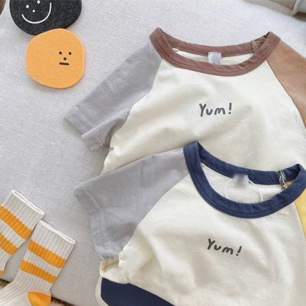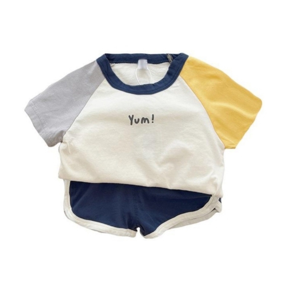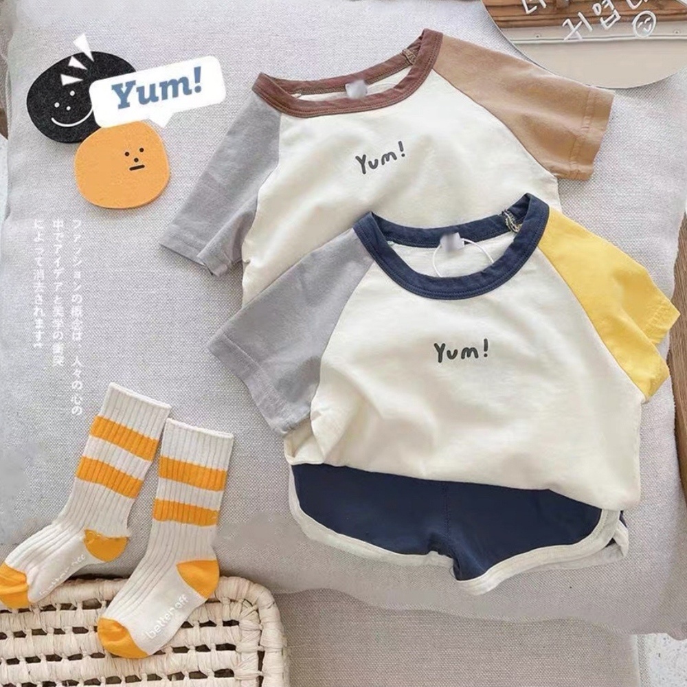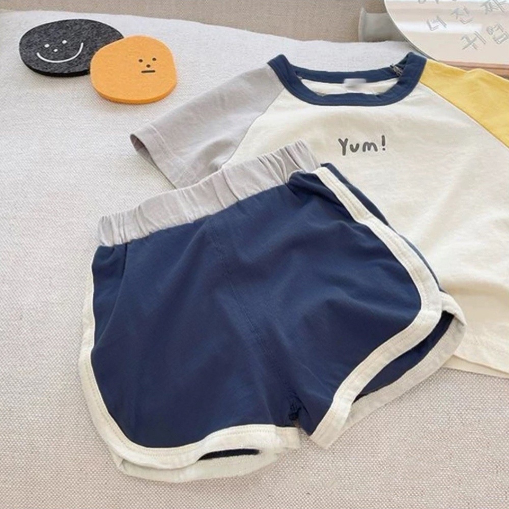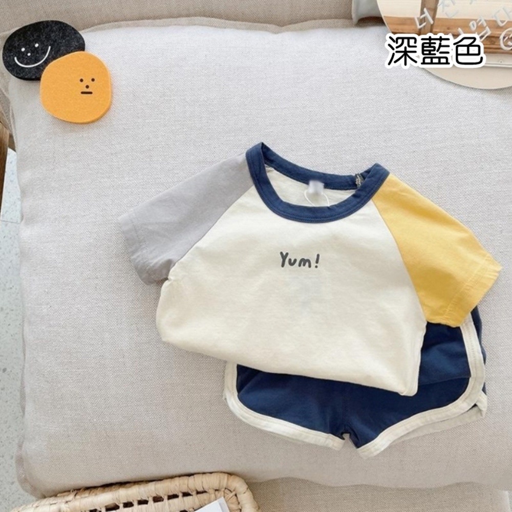 撞色領口字母滾邊套裝 短袖上衣 褲子 短褲 女童 男童 中性款 兒童 童裝 橘魔法 現貨【BB8291】