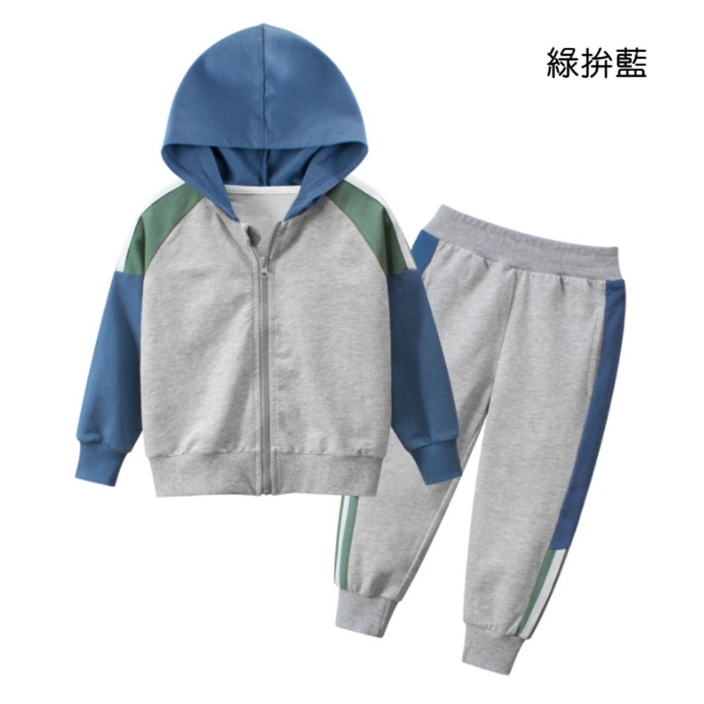 運動拚色插肩長袖套裝 連帽外套 薄外套 長袖外套 長褲 褲子 運動褲 男童 兒童 童裝 橘魔法【BB7353】