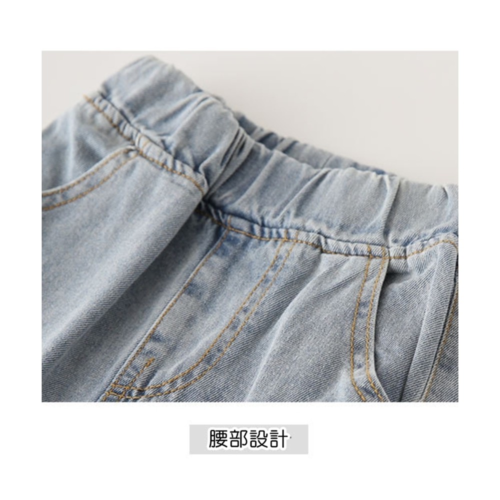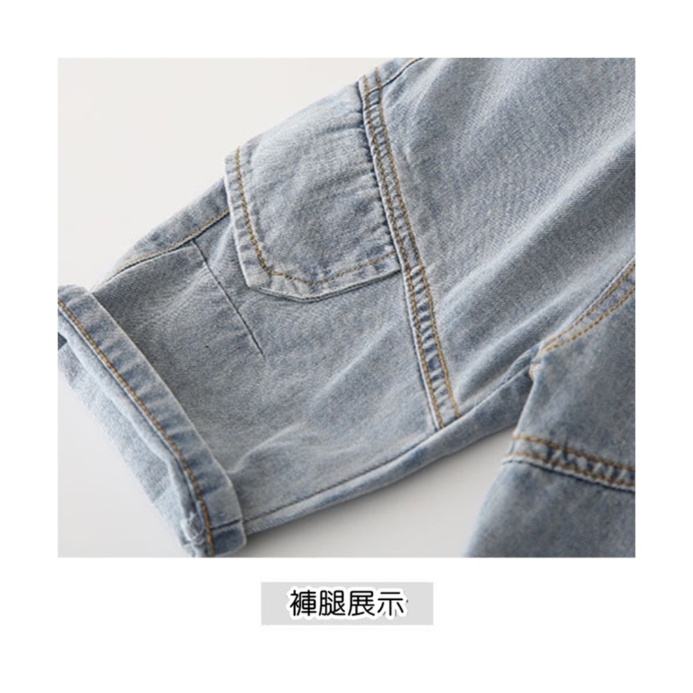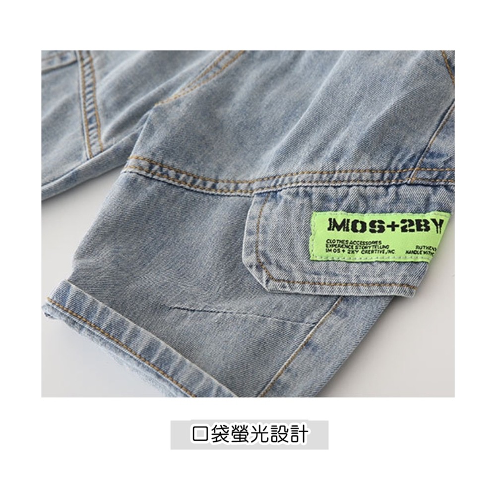 假翻蓋造型螢光字母貼布牛仔褲 七分褲 休閒褲 褲子 橘魔法 現貨 兒童 中童 童裝 男童【BB6579】