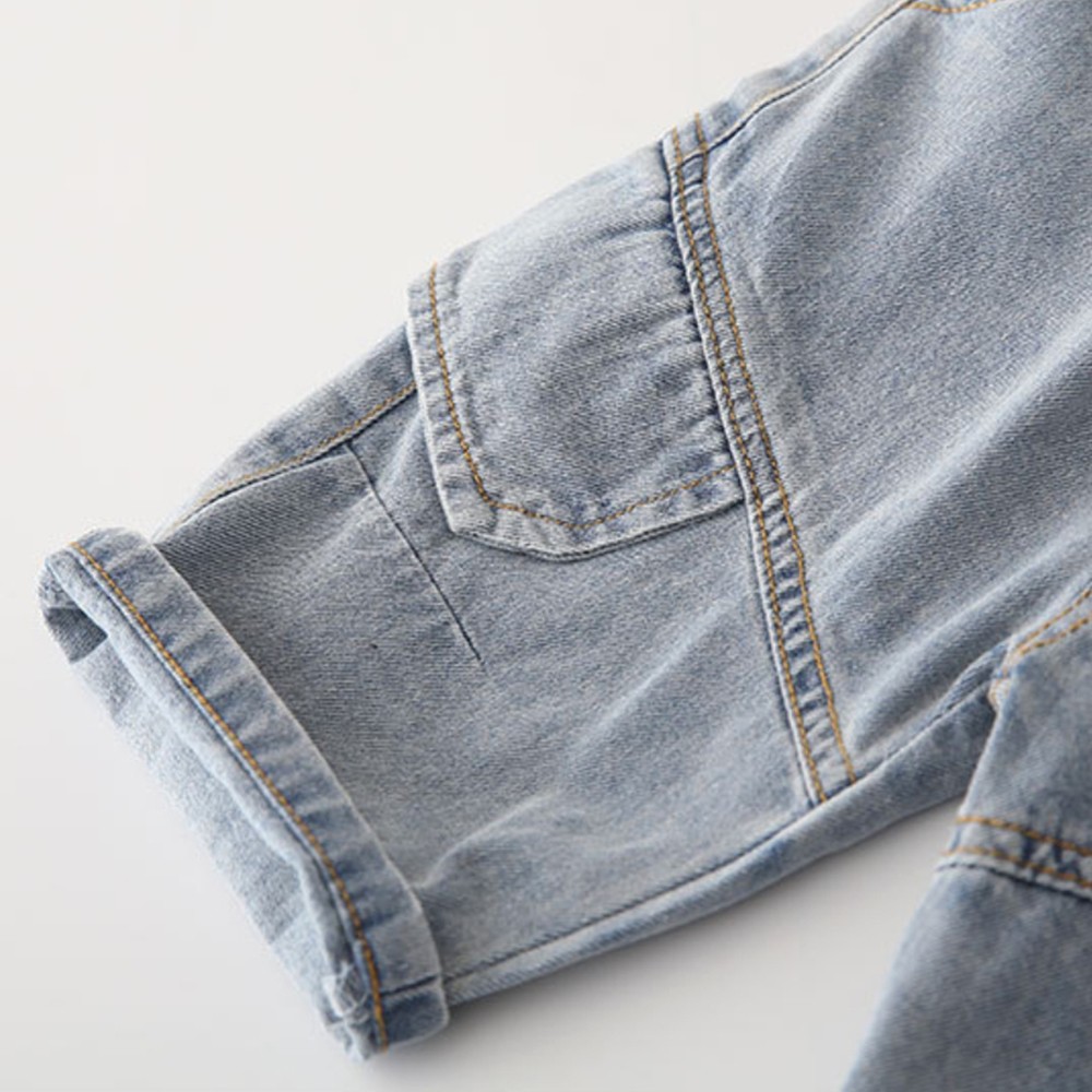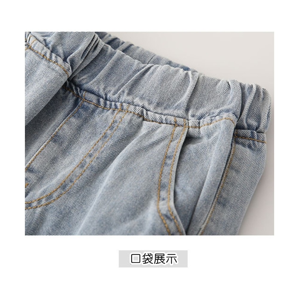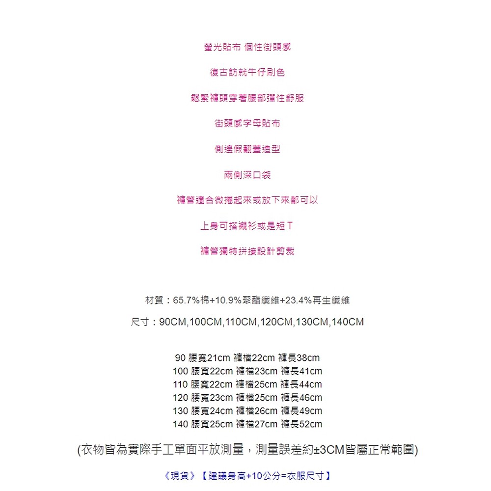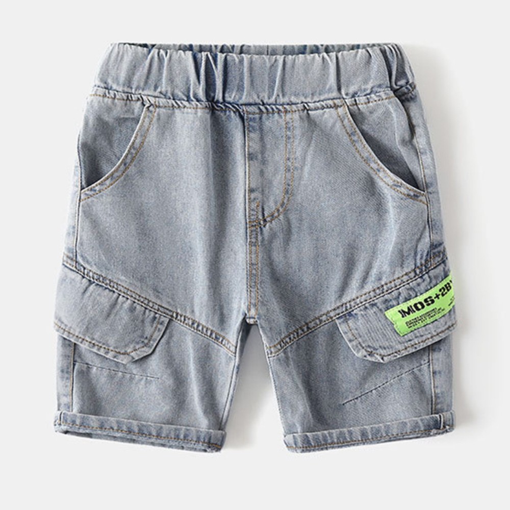 假翻蓋造型螢光字母貼布牛仔褲 七分褲 休閒褲 褲子 橘魔法 現貨 兒童 中童 童裝 男童【BB6579】