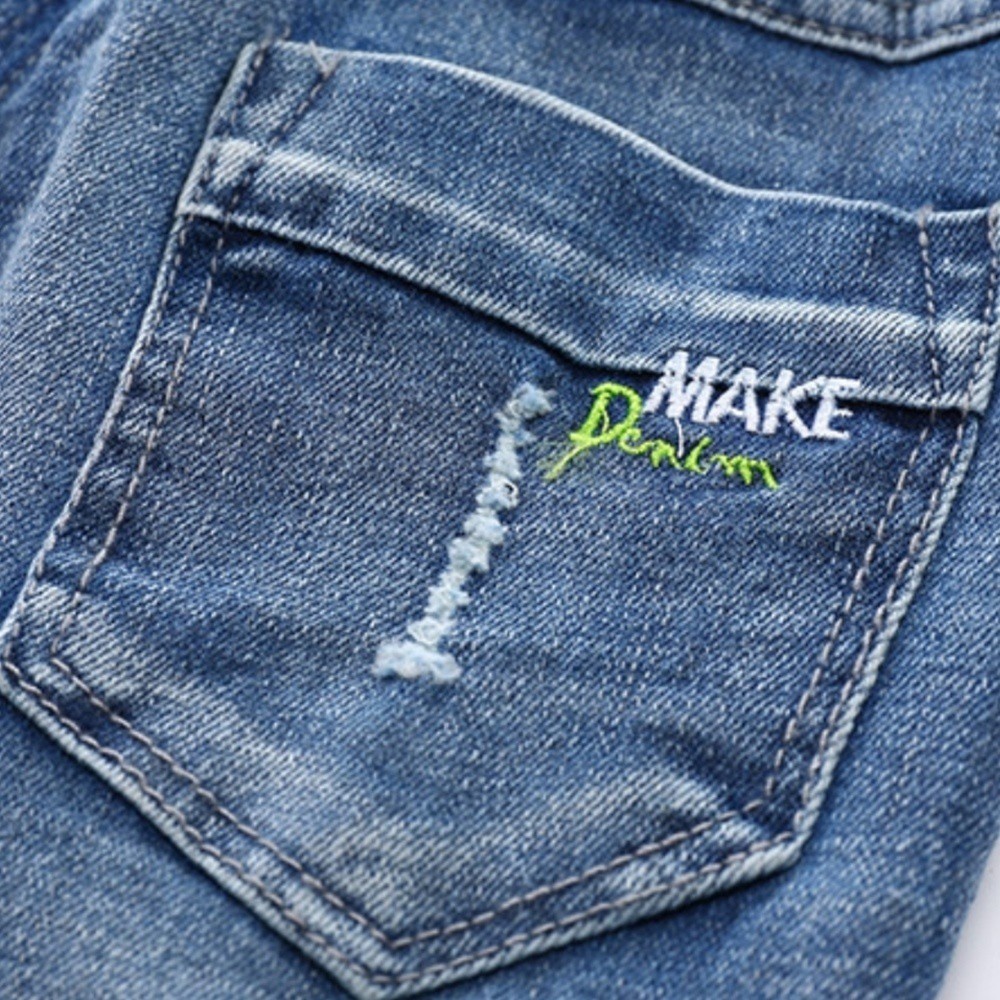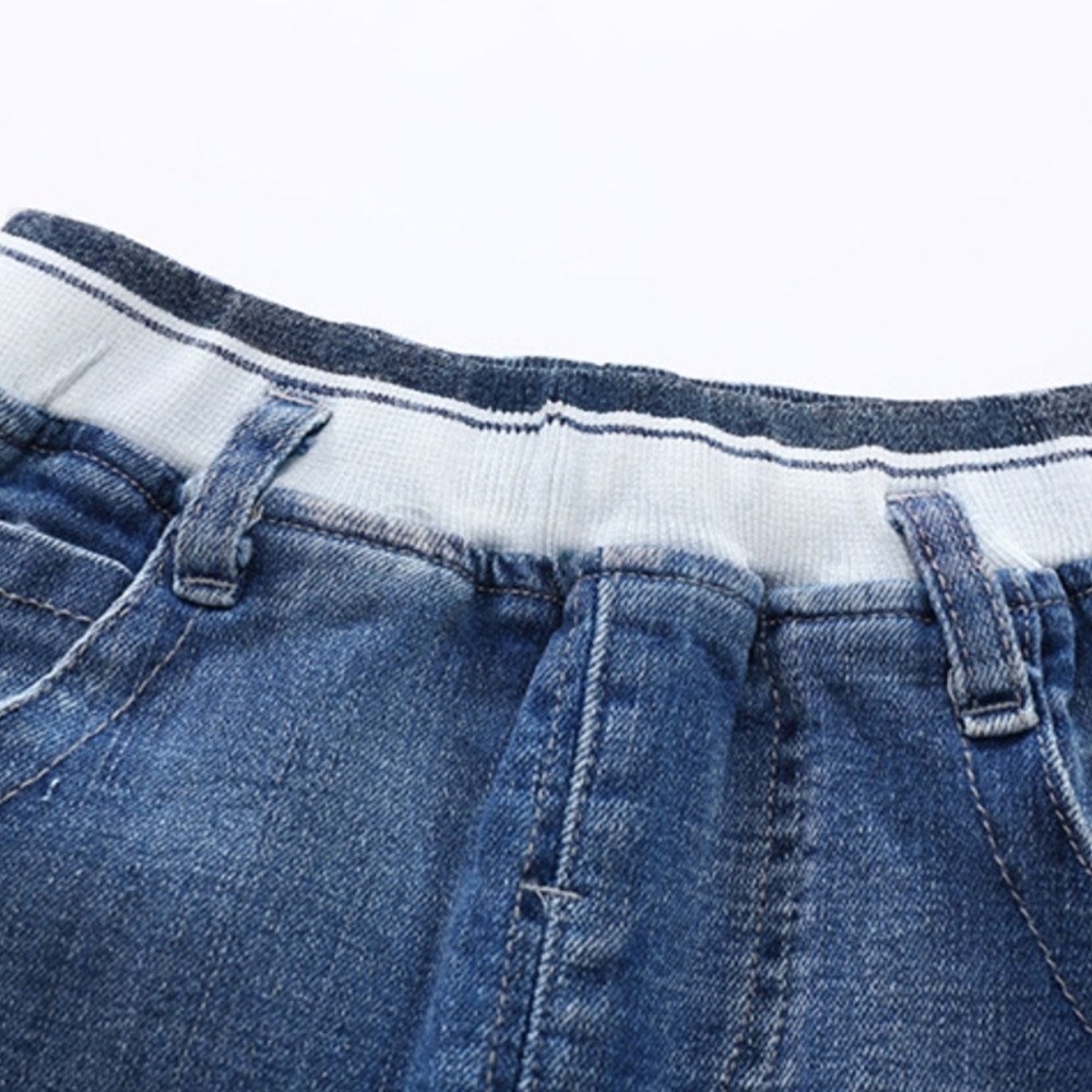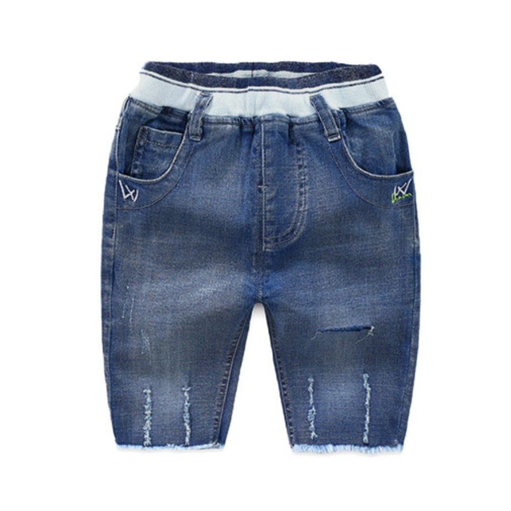 刺繡字母褲腳鬚邊牛仔褲 五分褲 七分褲 休閒褲 褲子 橘魔法 現貨 兒童 中童 【BB6769】