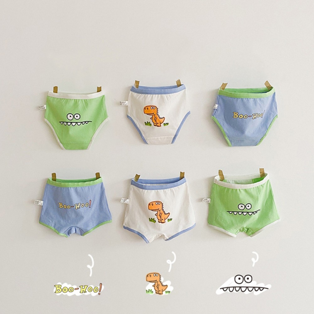 (3件一組) 怪獸恐龍滾邊薄棉內褲 三角內褲 平角內褲 男童 貼身衣物 童裝 兒童 【P0061228424367】