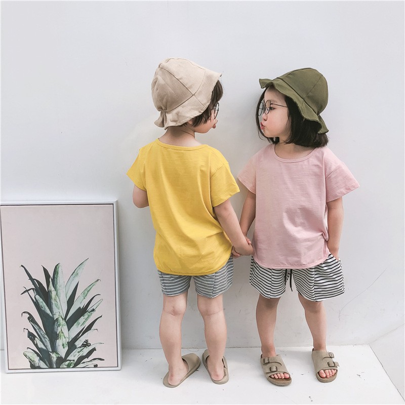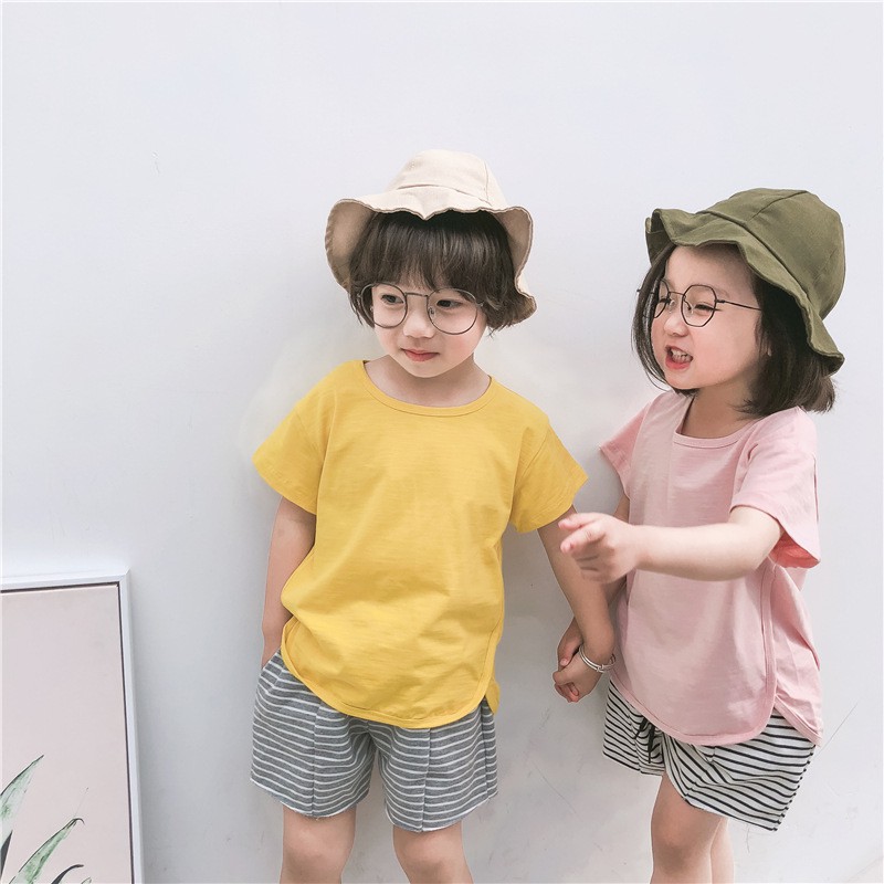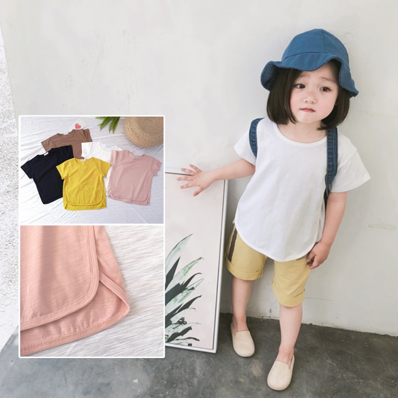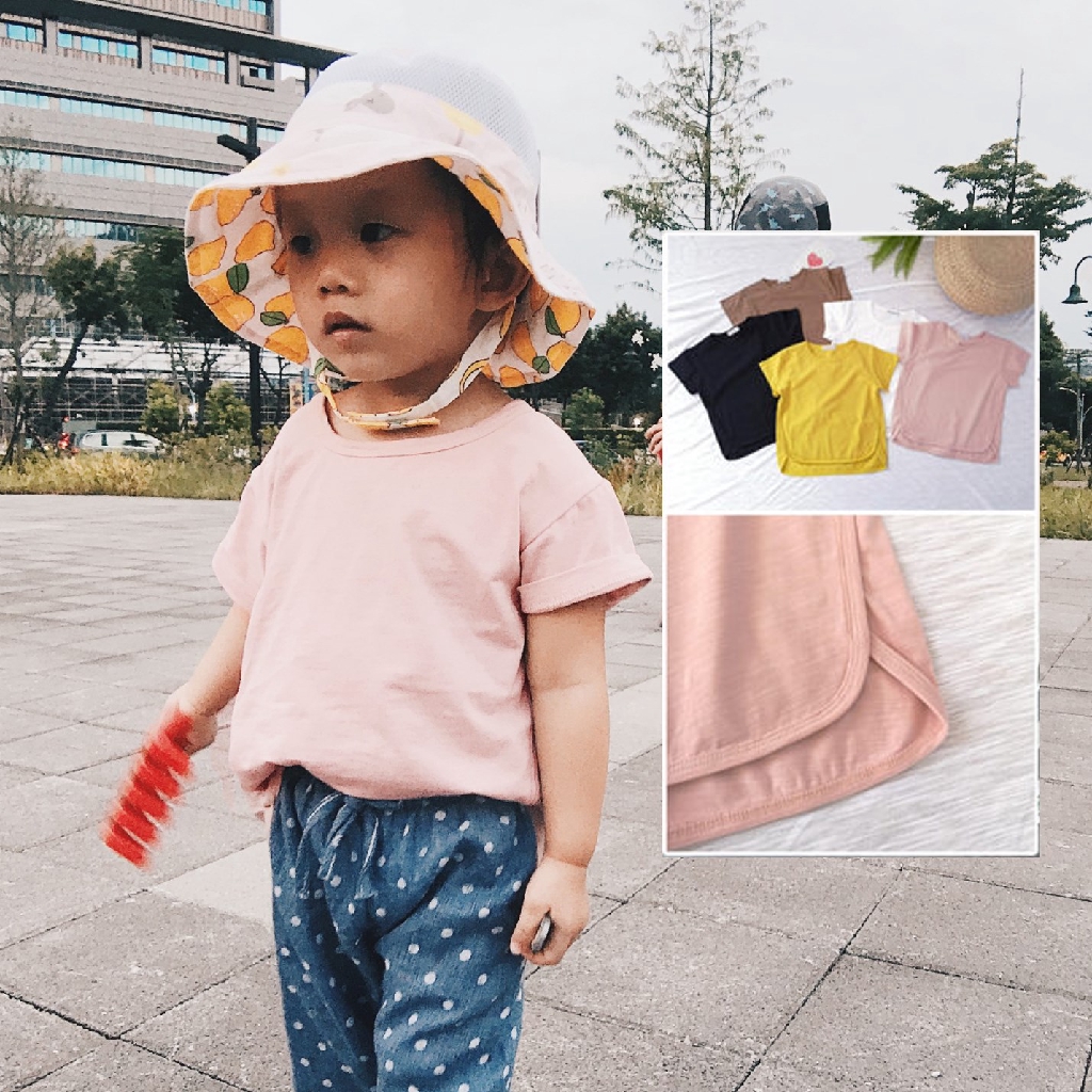 現貨在台灣 竹節棉包邊拼接前短後長短袖上衣 橘魔法 兒童 童裝 男女童 小朋友【p0061169783927】