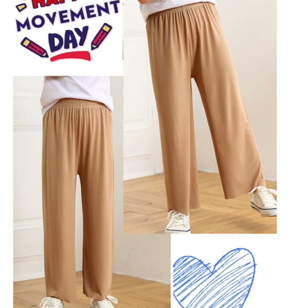 (小童優惠價)涼感素色不收邊羅紋長褲 寬褲 防蚊褲 休閒褲 大童 薄長褲 空調褲 兒童 童裝 【BB7789】