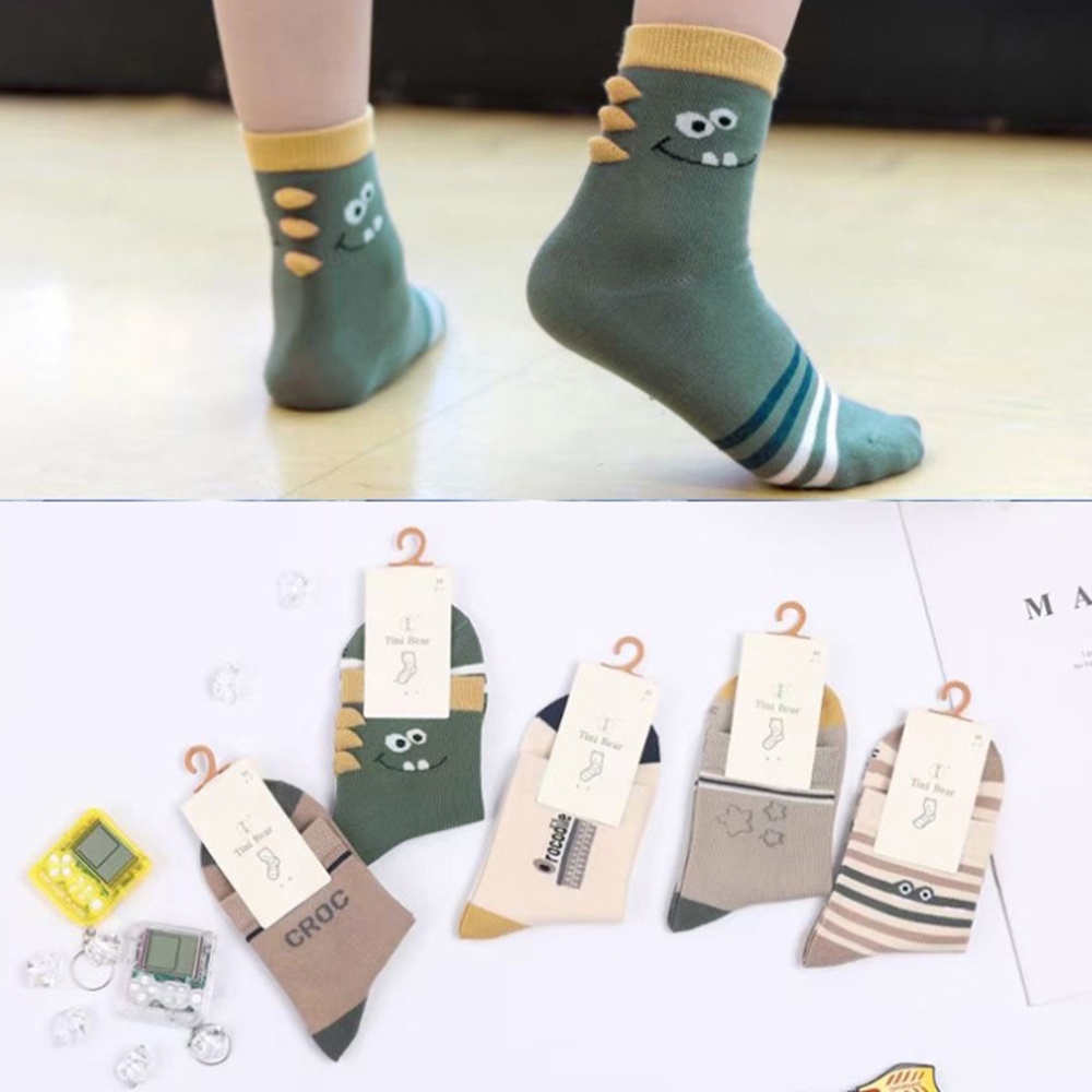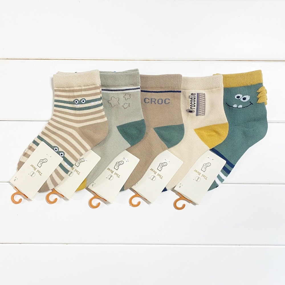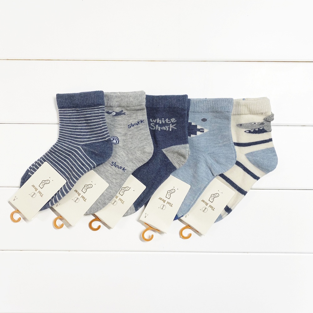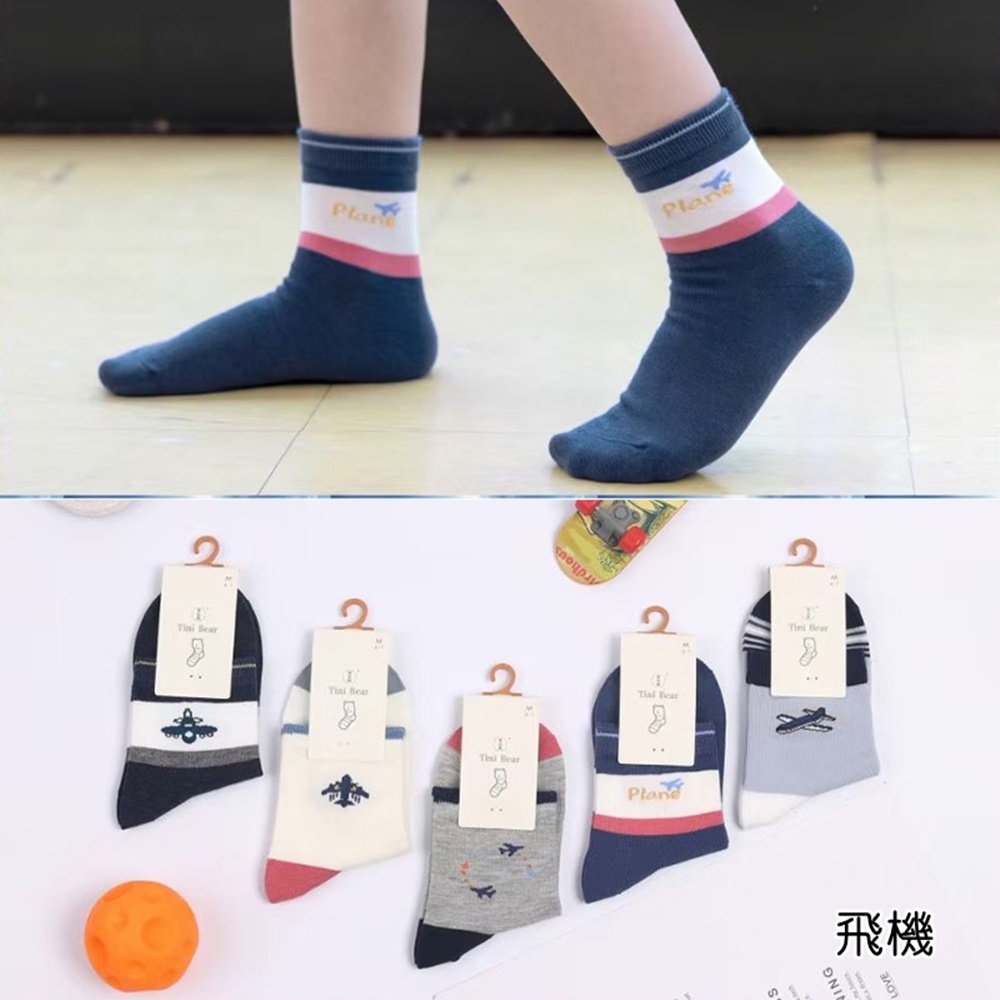 (5雙一組) 柔和色系恐龍 鯊魚 飛機 精梳棉短襪 大童 男童 襪子 短襪 童裝 兒童【p0061230200829】
