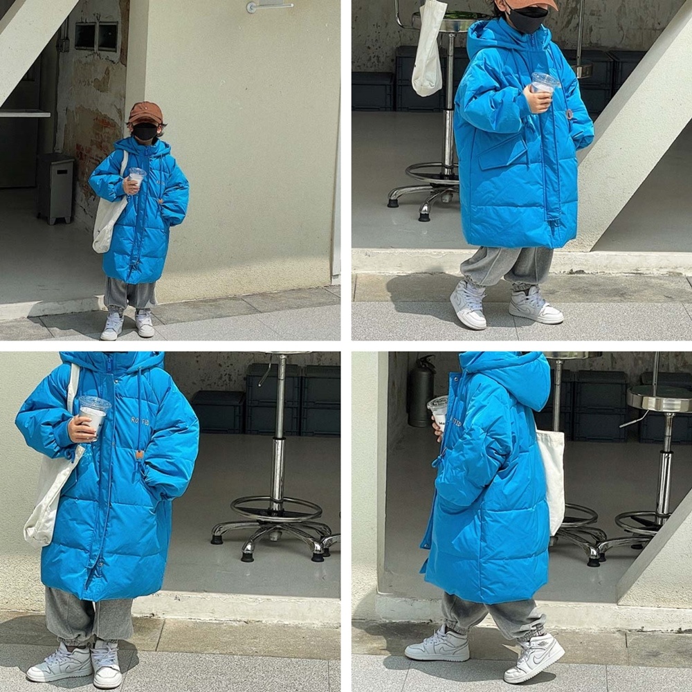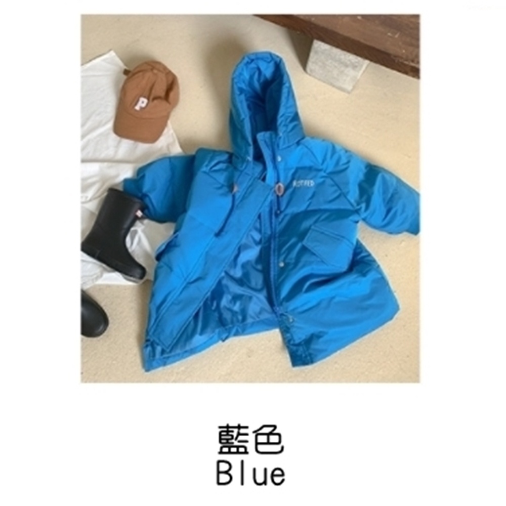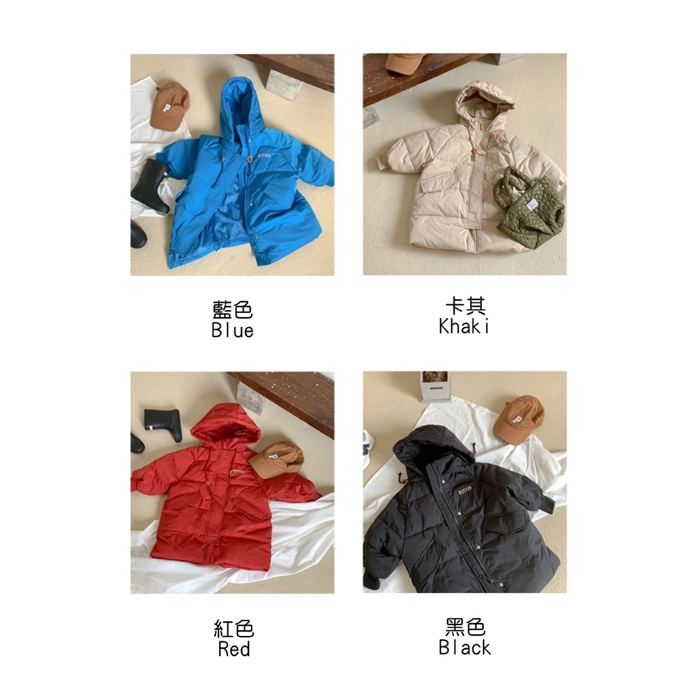 刺繡字母皮扣連帽拉鍊羽絨外套 大童 厚外套 中性款 長袖 連帽外套 保暖 女童 男童【BB7507】