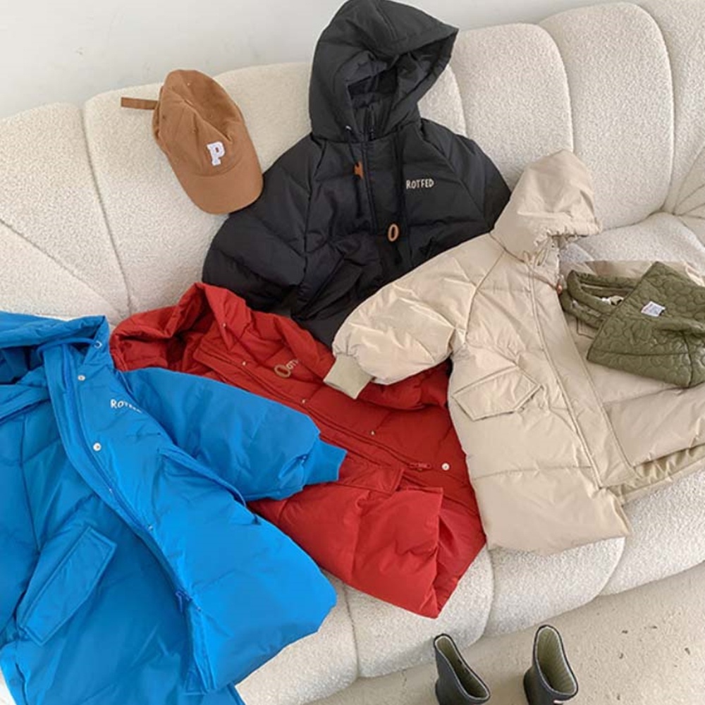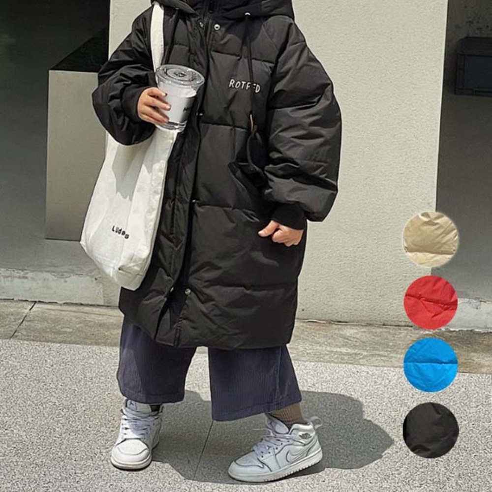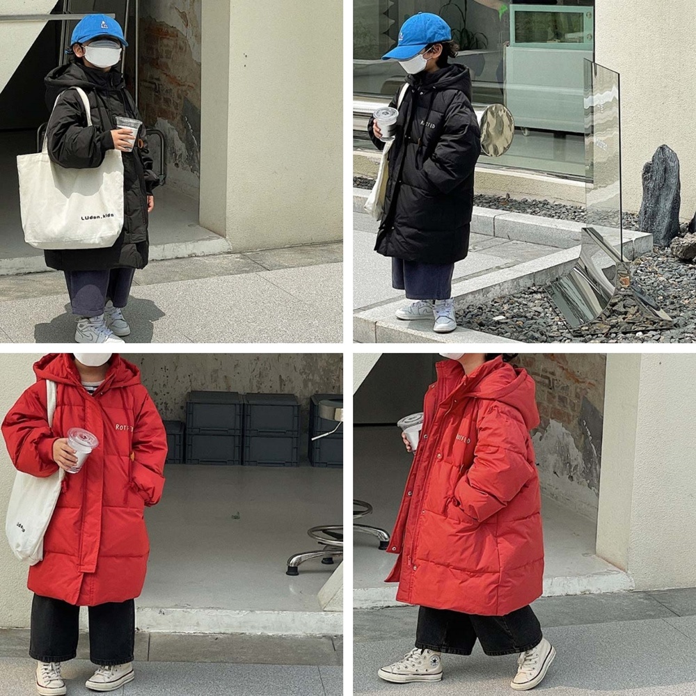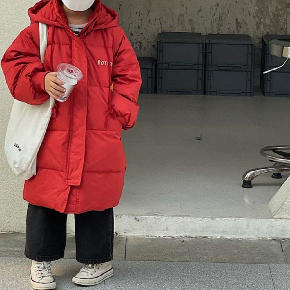 刺繡字母皮扣連帽拉鍊羽絨外套 大童 厚外套 中性款 長袖 連帽外套 保暖 女童 男童【BB7507】