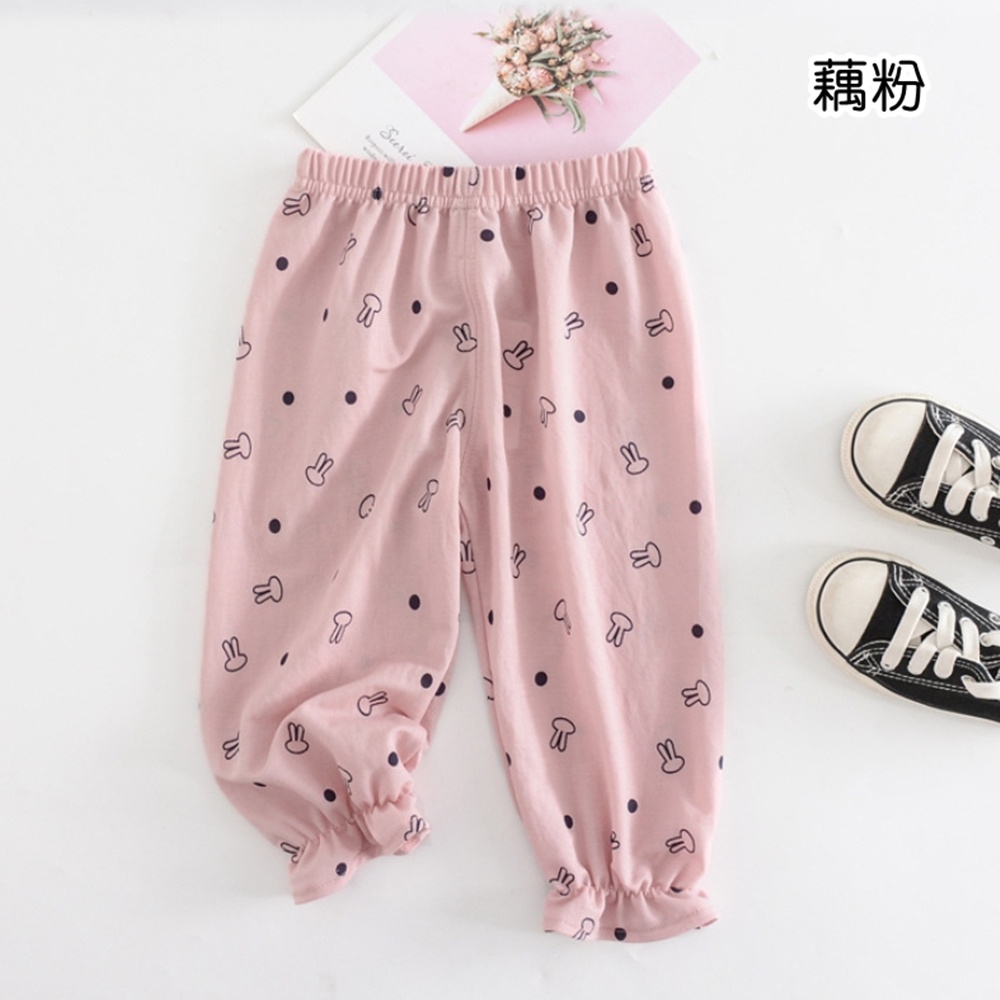 滿印兔子透氣棉紗縮口褲 七分褲 防蚊褲 空調褲 褲子 女童 現貨 童裝 橘魔法 現貨【BB8198】