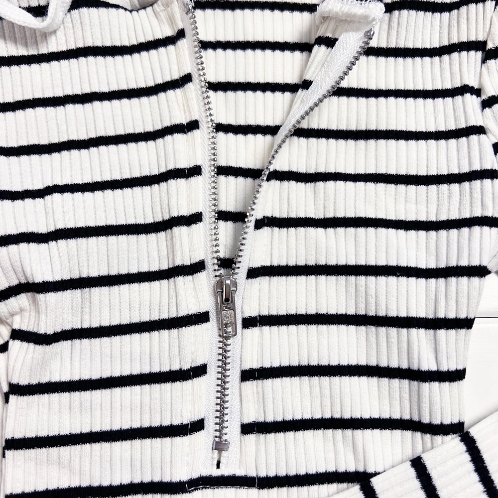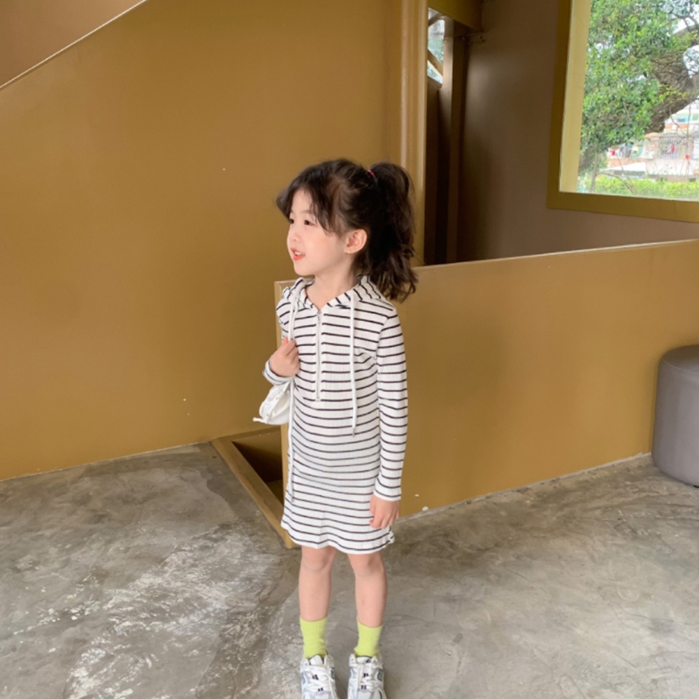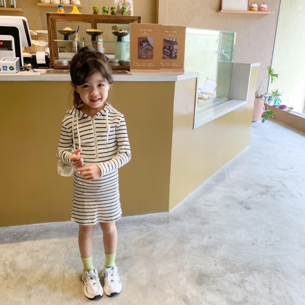 螺紋半拉條紋連帽長袖連身裙 連衣裙 薄長袖 裙子 合身裙 大童 女童 兒童 洋裝【BB7609】