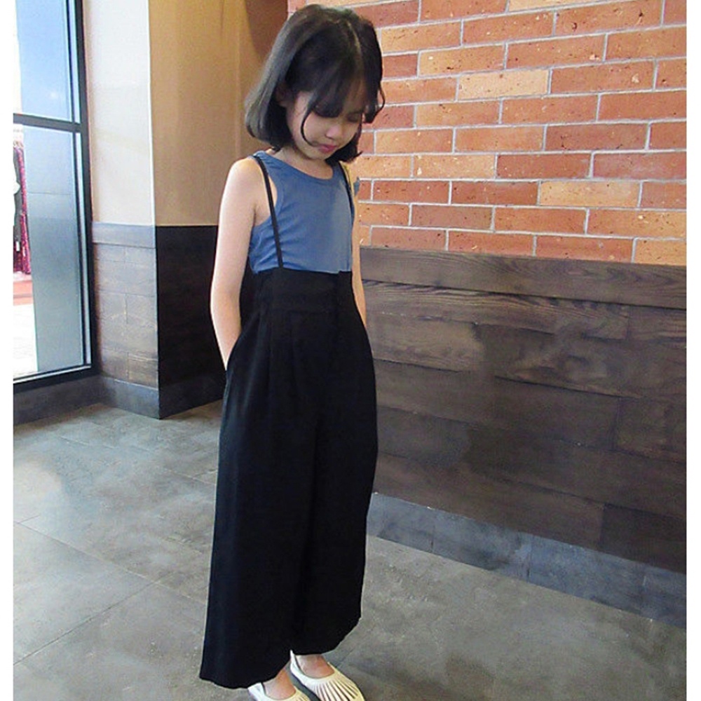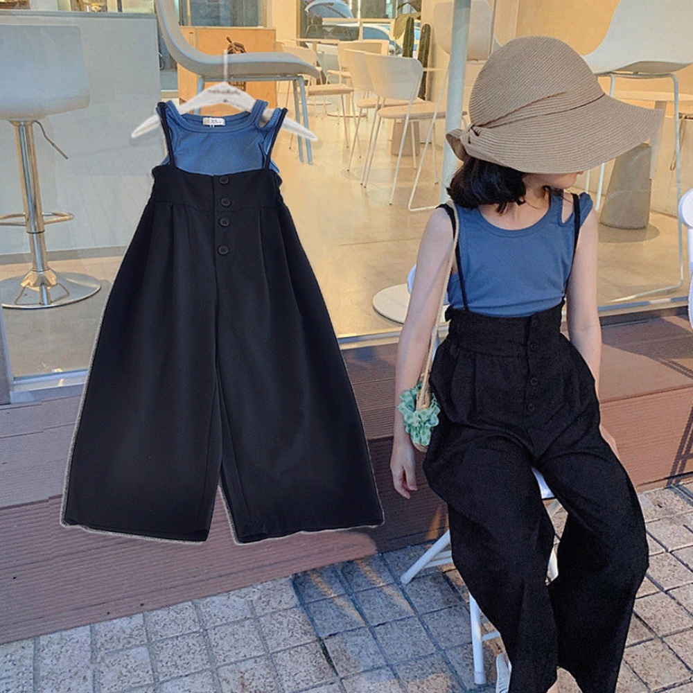 休閒單邊露肩上衣+荷葉後抓皺細肩吊帶寬褲 套裝 括腿褲 背心 大童 女童 兒童 童裝【BB8139】