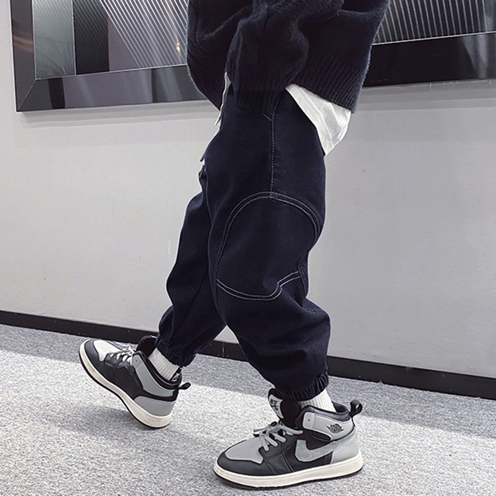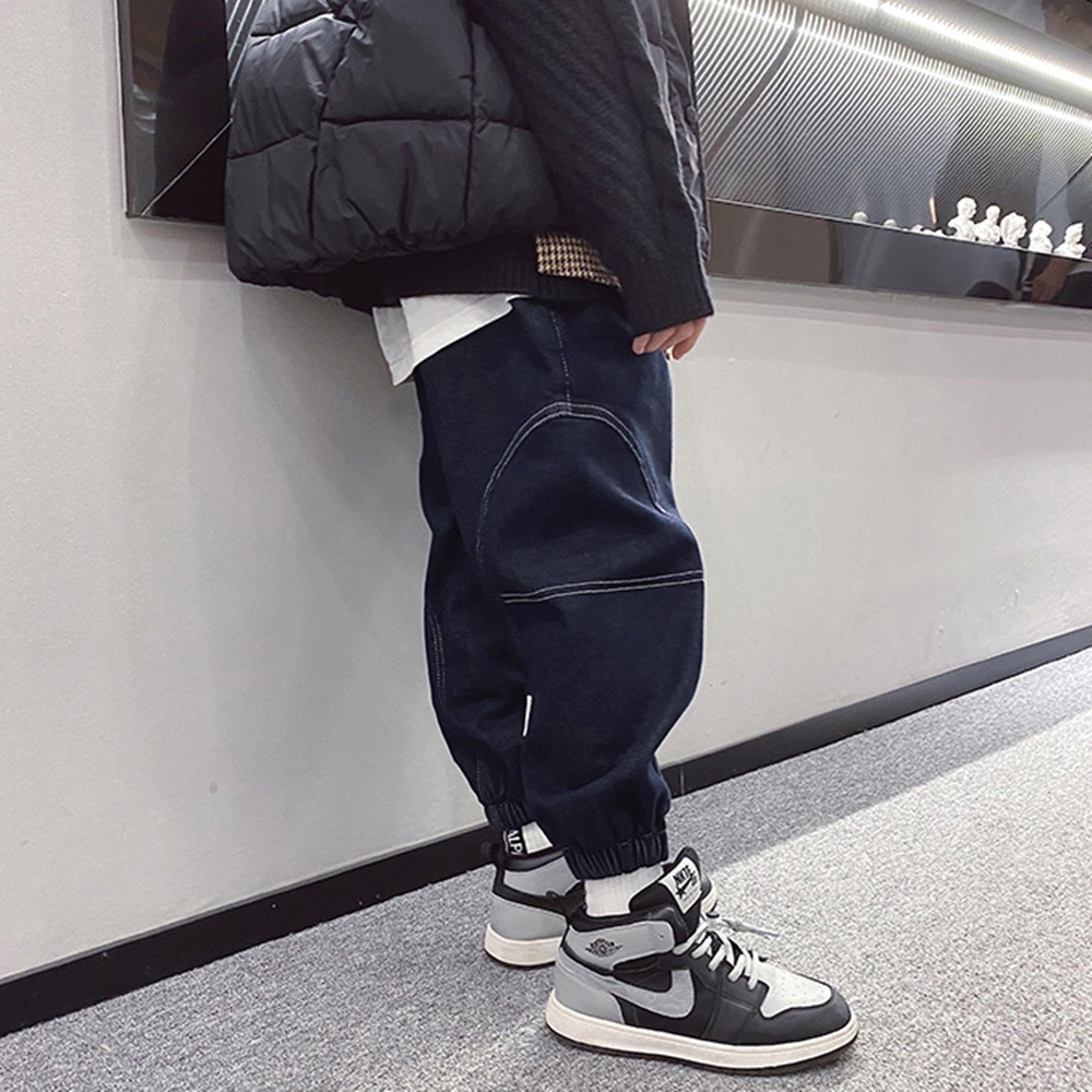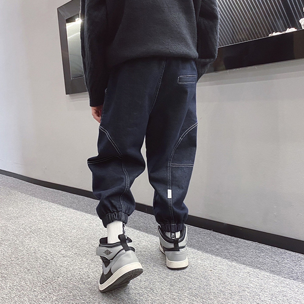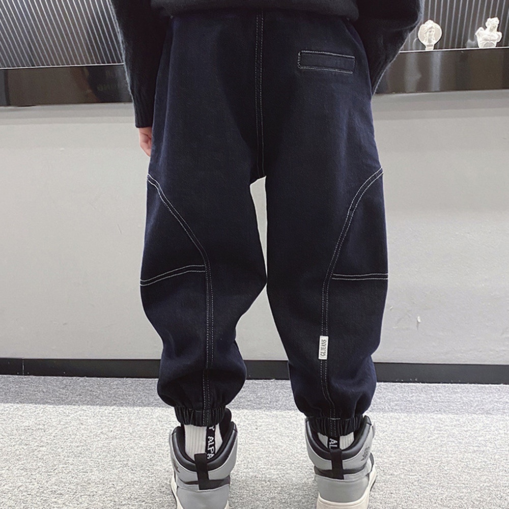 圓弧車邊刷毛牛仔縮口長褲 厚長褲 褲子 縮口褲 長褲 牛仔褲 男童 童裝 橘魔法 現貨【BB7342】