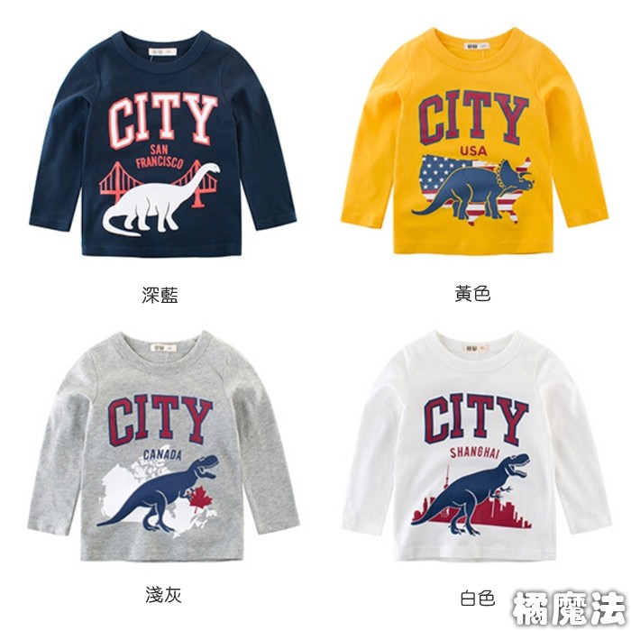 城市恐龍系列長袖上衣 薄長袖 橘魔法 現貨在台灣 童裝 男童 現貨在台灣【BB7657】