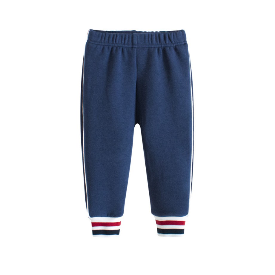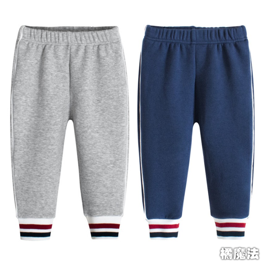 褲腳螺紋拚色縮口刷絨厚款運動褲 長褲 棉褲 運動褲 休閒褲 中童 橘魔法 現貨 男童【p0061172927497】