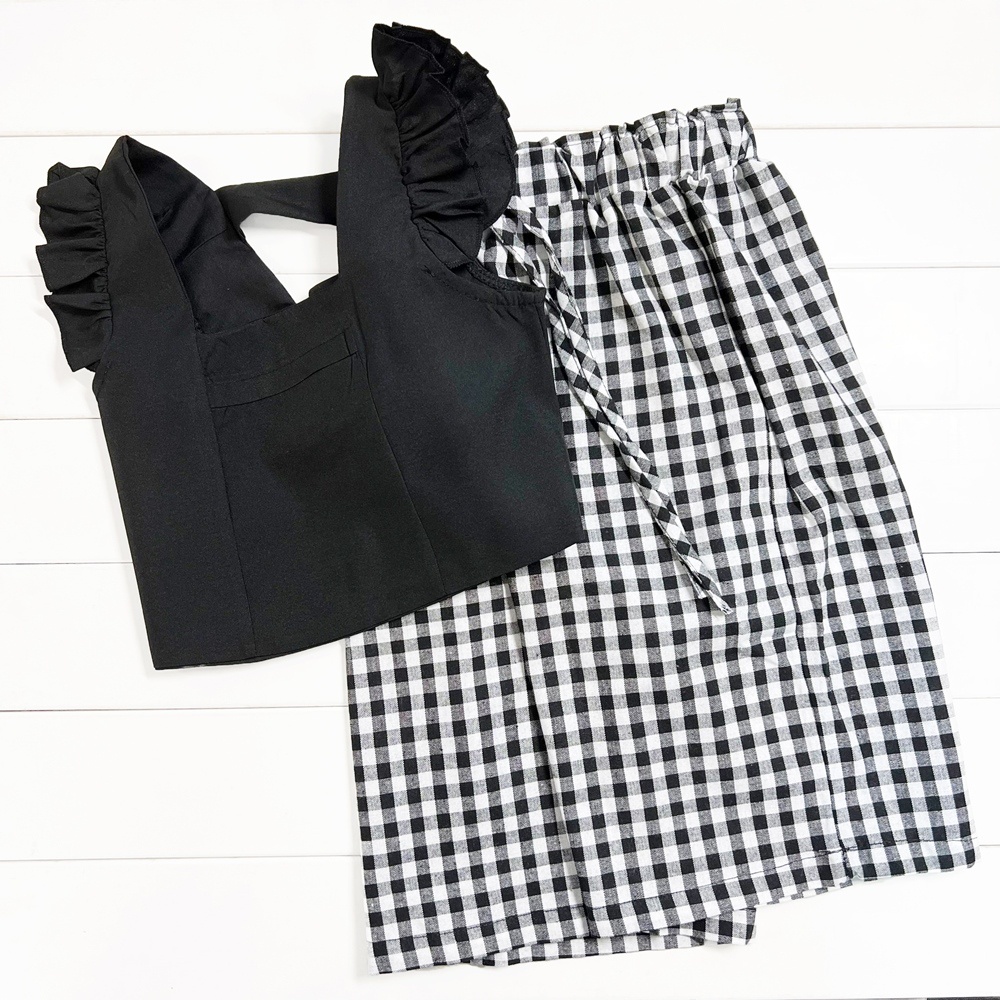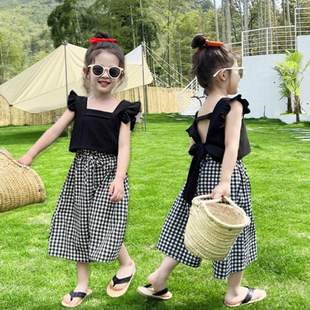 (小童優惠價)黑色小飛袖露背上衣寬褲套裝 褲子 寬褲 闊腿褲 褲裙 女童 兒童 童裝 橘魔法【BB8862】