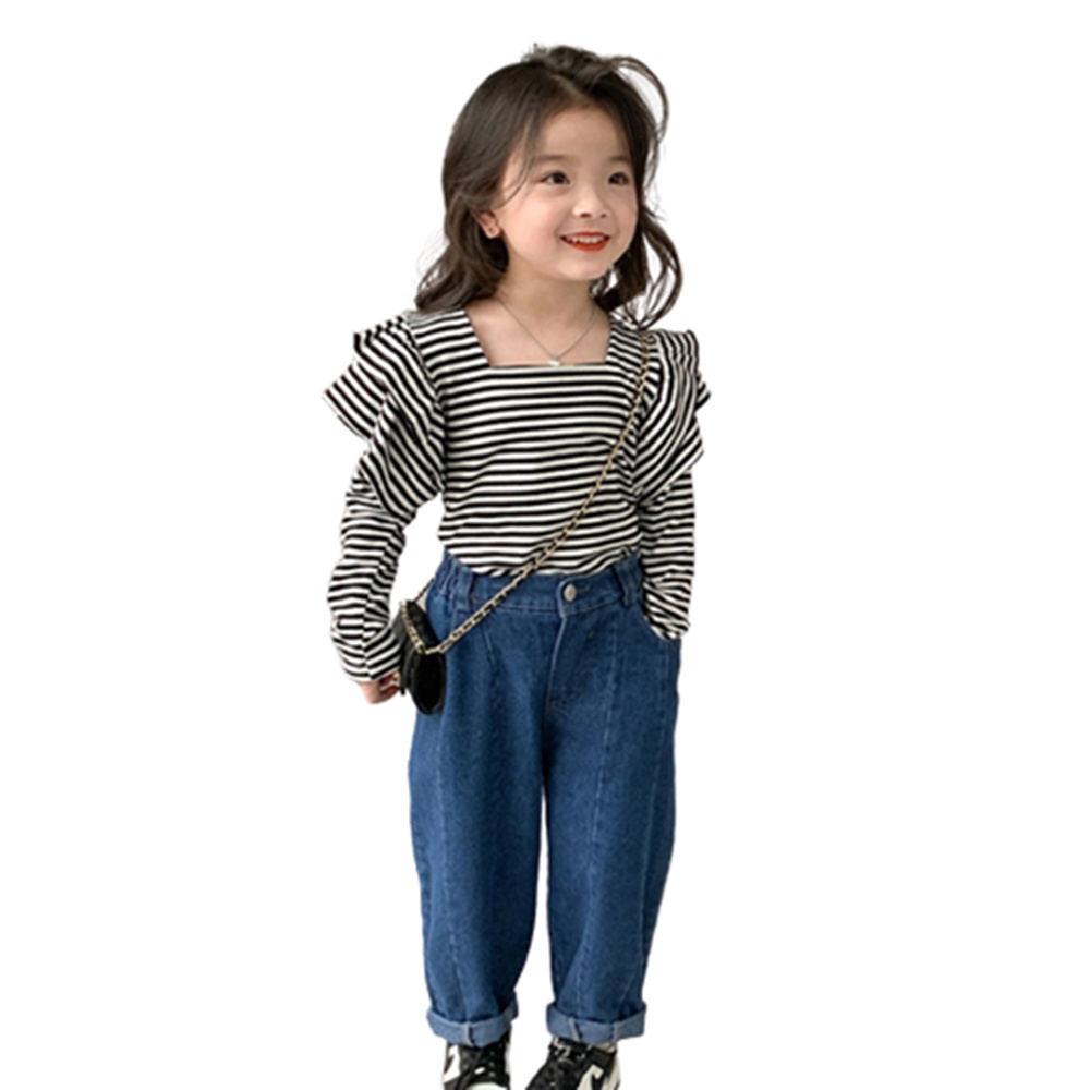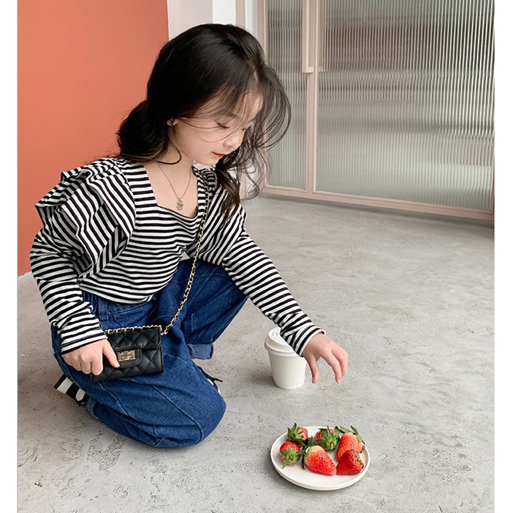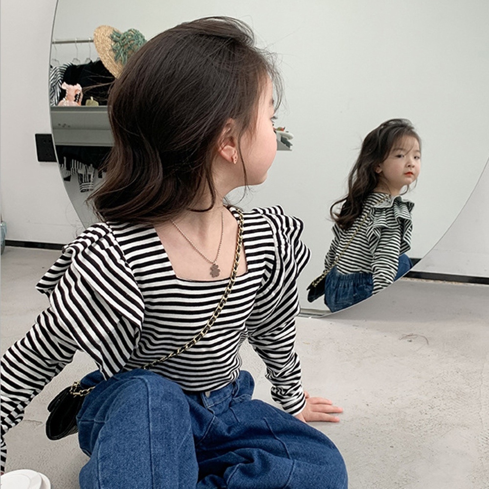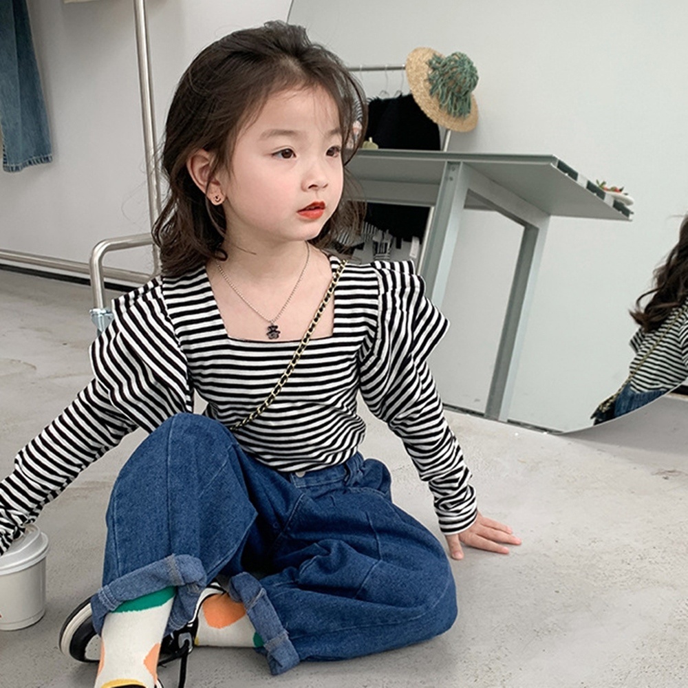氣質方領小飛袖長袖上衣 大童 薄長袖 女童 兒童 童裝 現貨 橘魔法【BB7998】