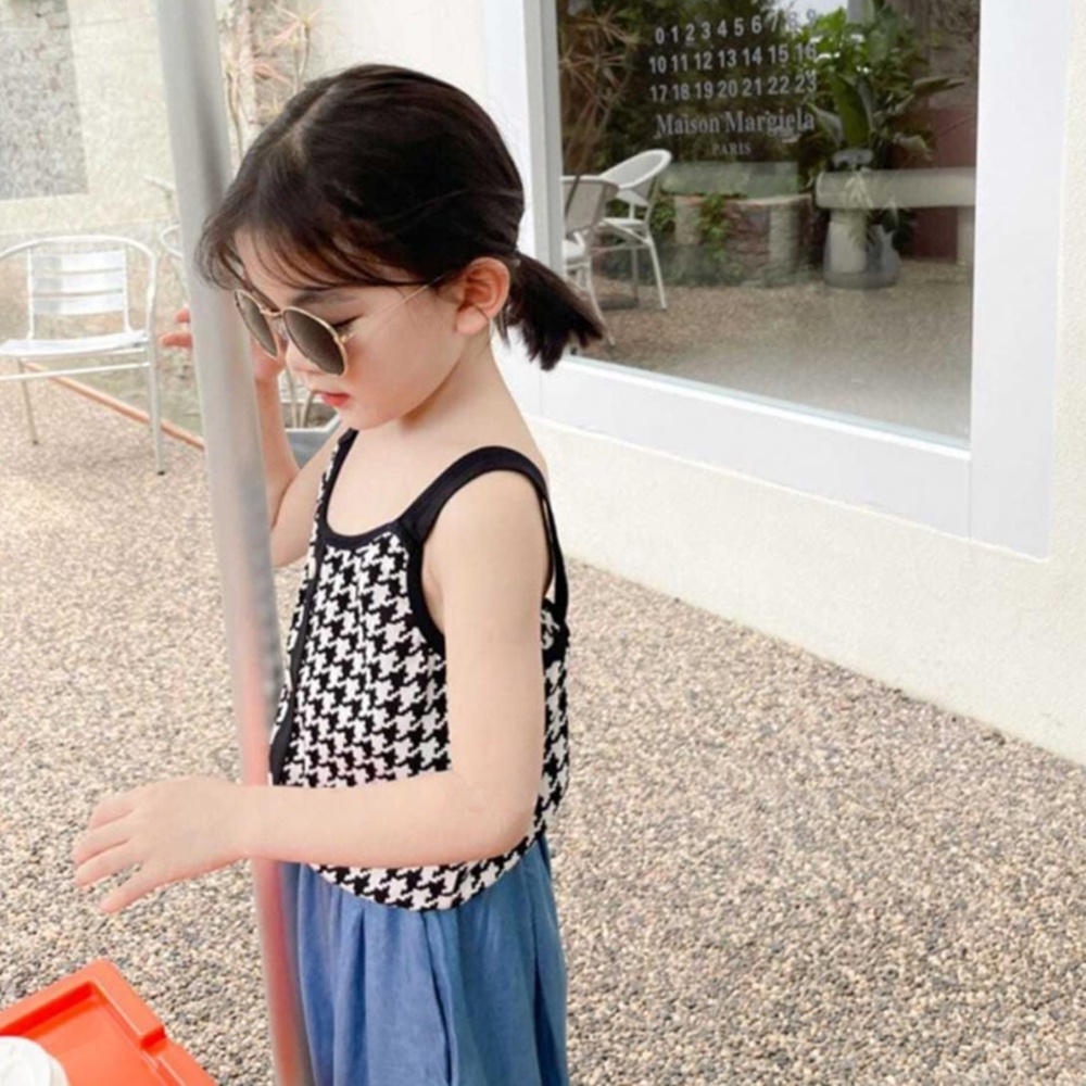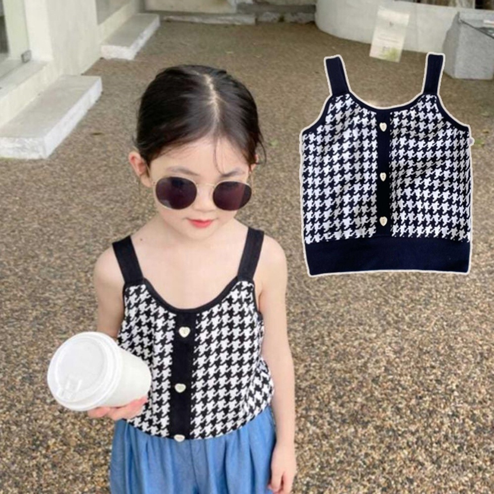 千鳥紋愛心扣肩帶背心 大童 背心上衣 可單穿 女童 兒童 童裝 現貨 橘魔法【BB8141】