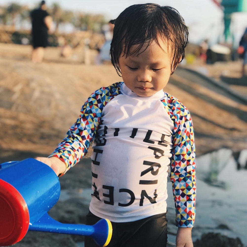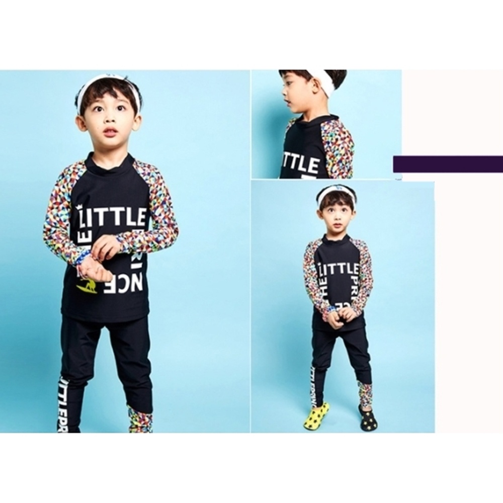 幾何插肩防曬長袖泳裝+長褲 二件式 水母衣 寶寶泳衣聖誕 橘魔法 玩水褲 泳衣 兒童【p0061234146887】