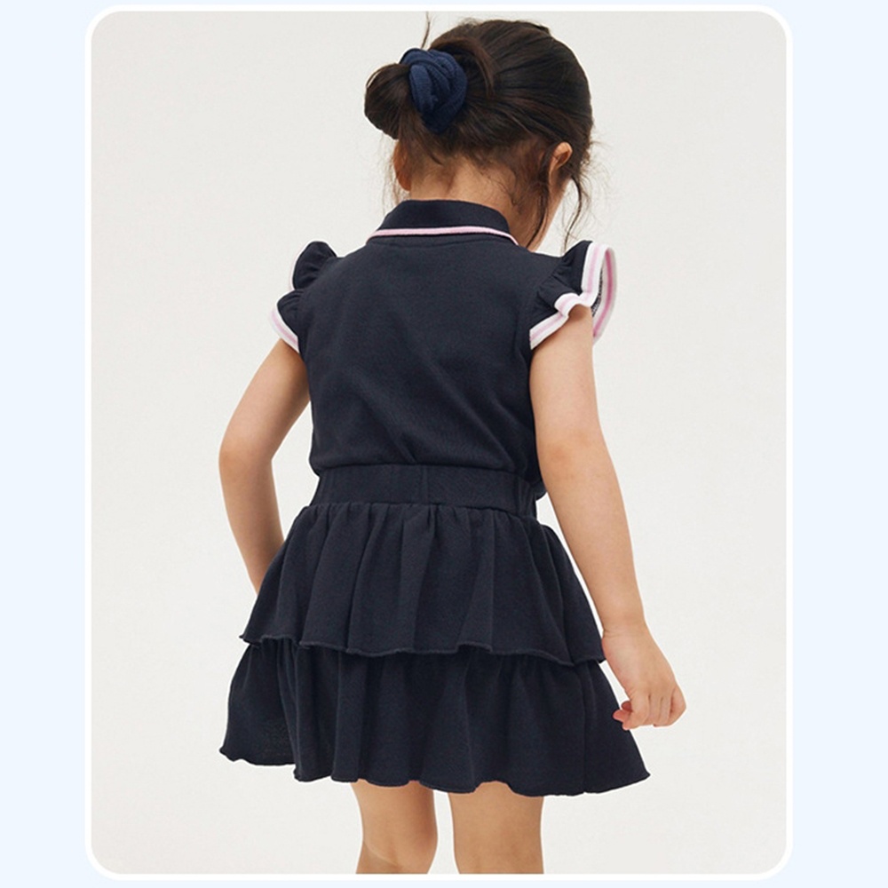 網眼愛心小飛袖POLO衫套裝 蛋糕裙 短裙 裙子 大童 運動風 女童 兒童 童裝 橘魔法 【BB8260】