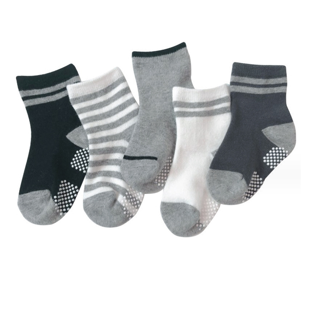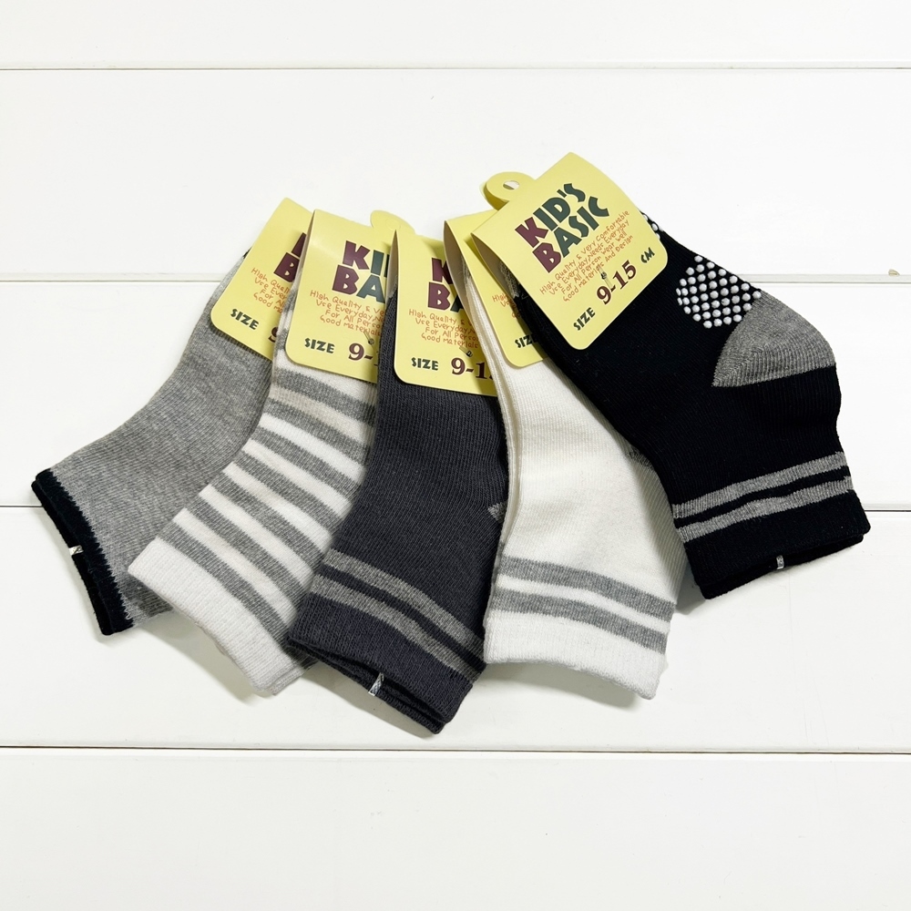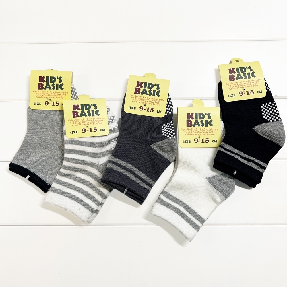 (5入)黑白灰雙條防滑膠點中筒襪 短襪 襪子 童襪 男童 中童 小童 兒童 童裝【BB6305】