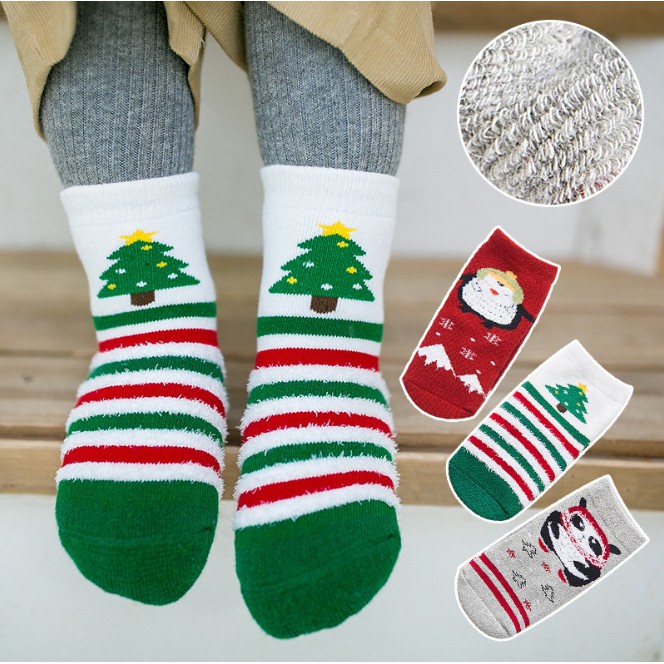 聖誕樹 兒童聖誕卡通厚款毛圈短襪 (3雙一組) 橘魔法 現貨在台灣 兒童 耶誕節【p0061166944395】